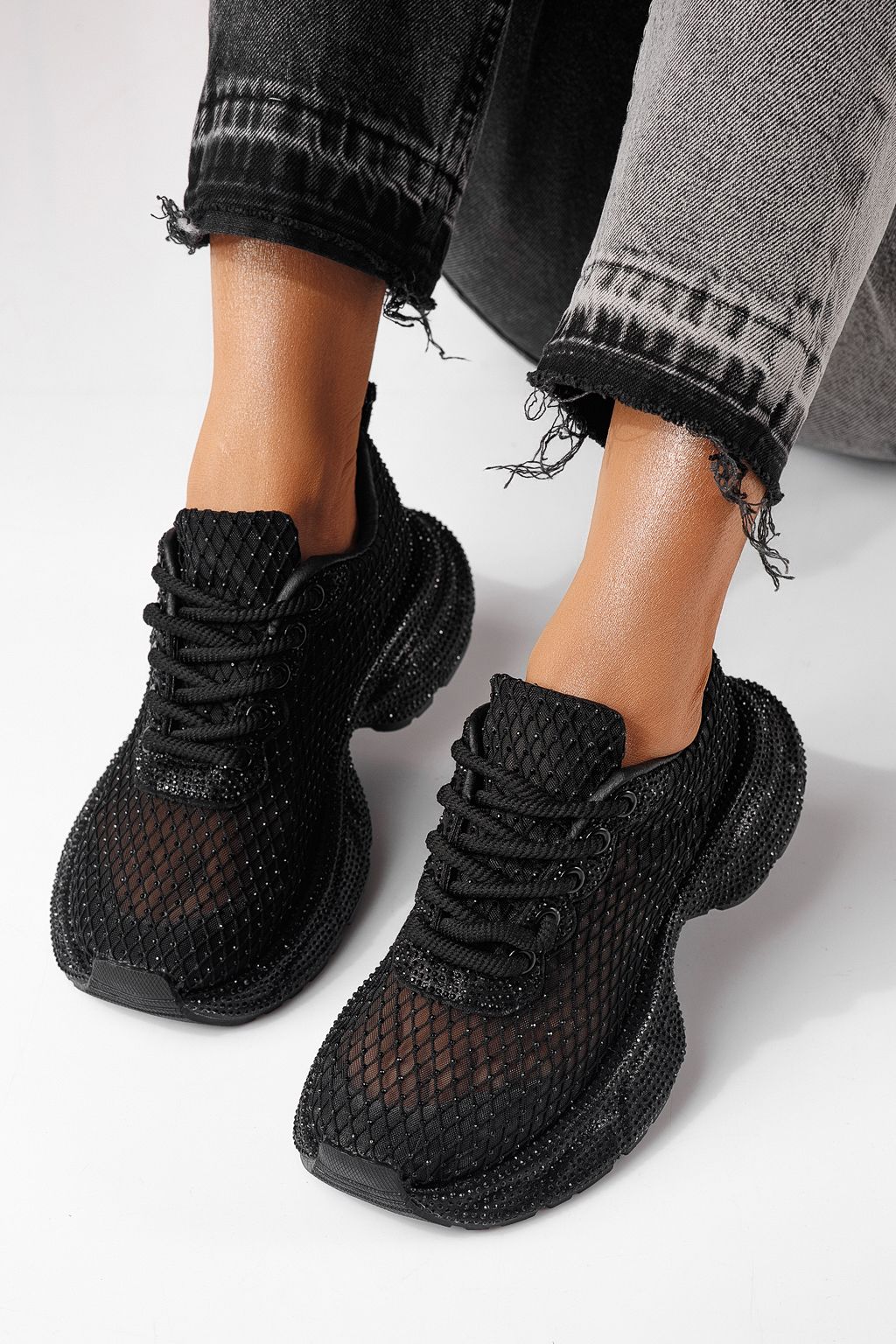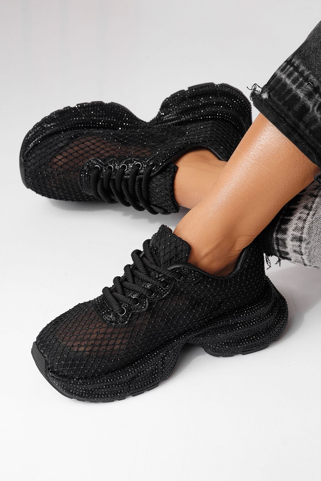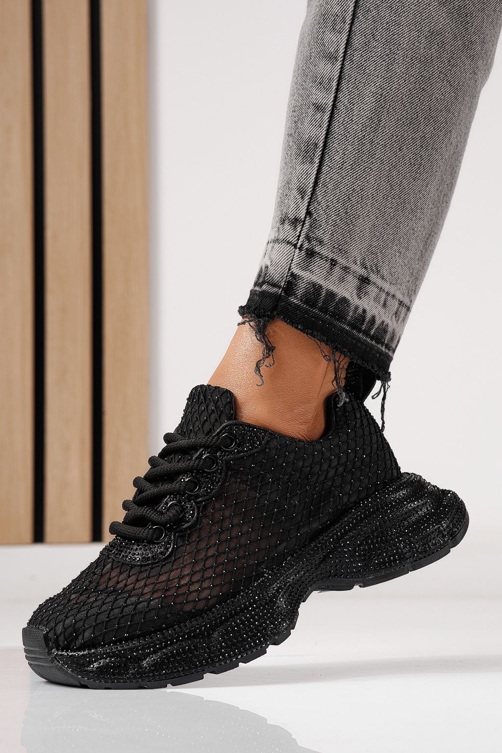 Дамски маратонки черни от текстилен материал Cataleya #24066