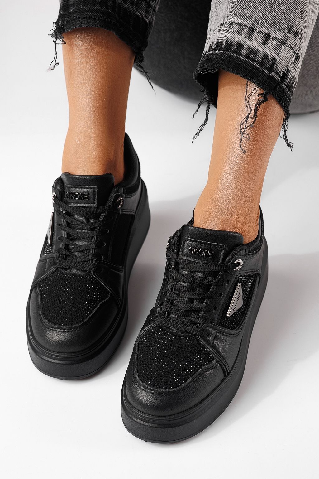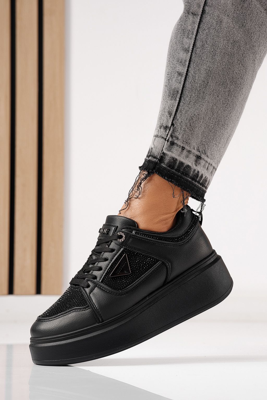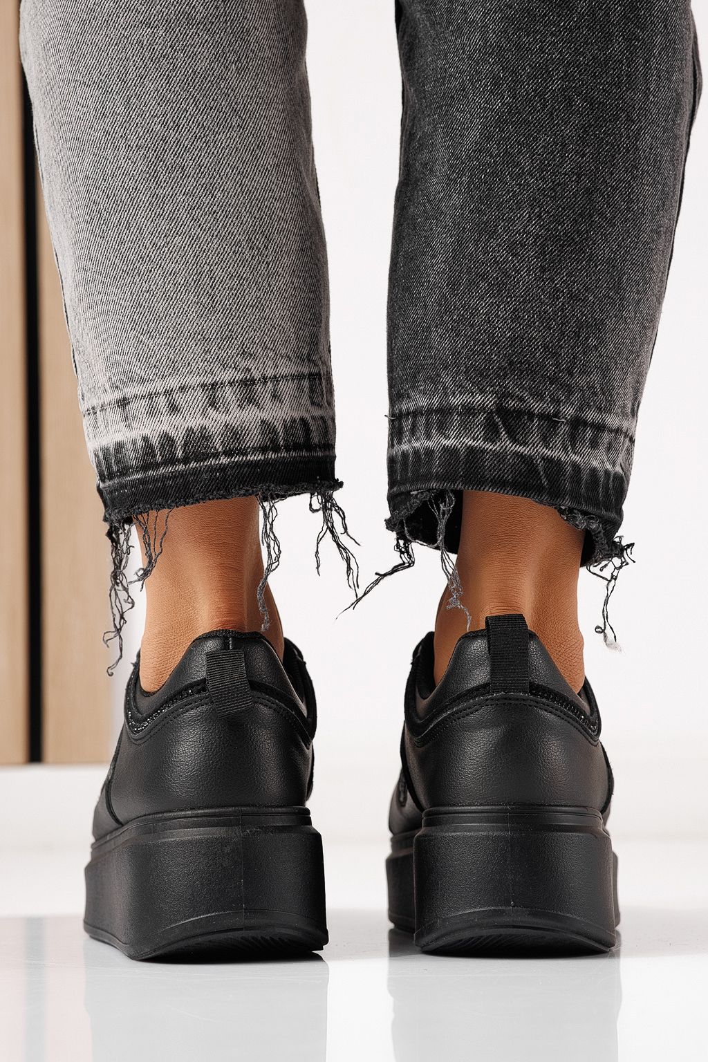 Дамски маратонки черни от еко кожа Delia #24080