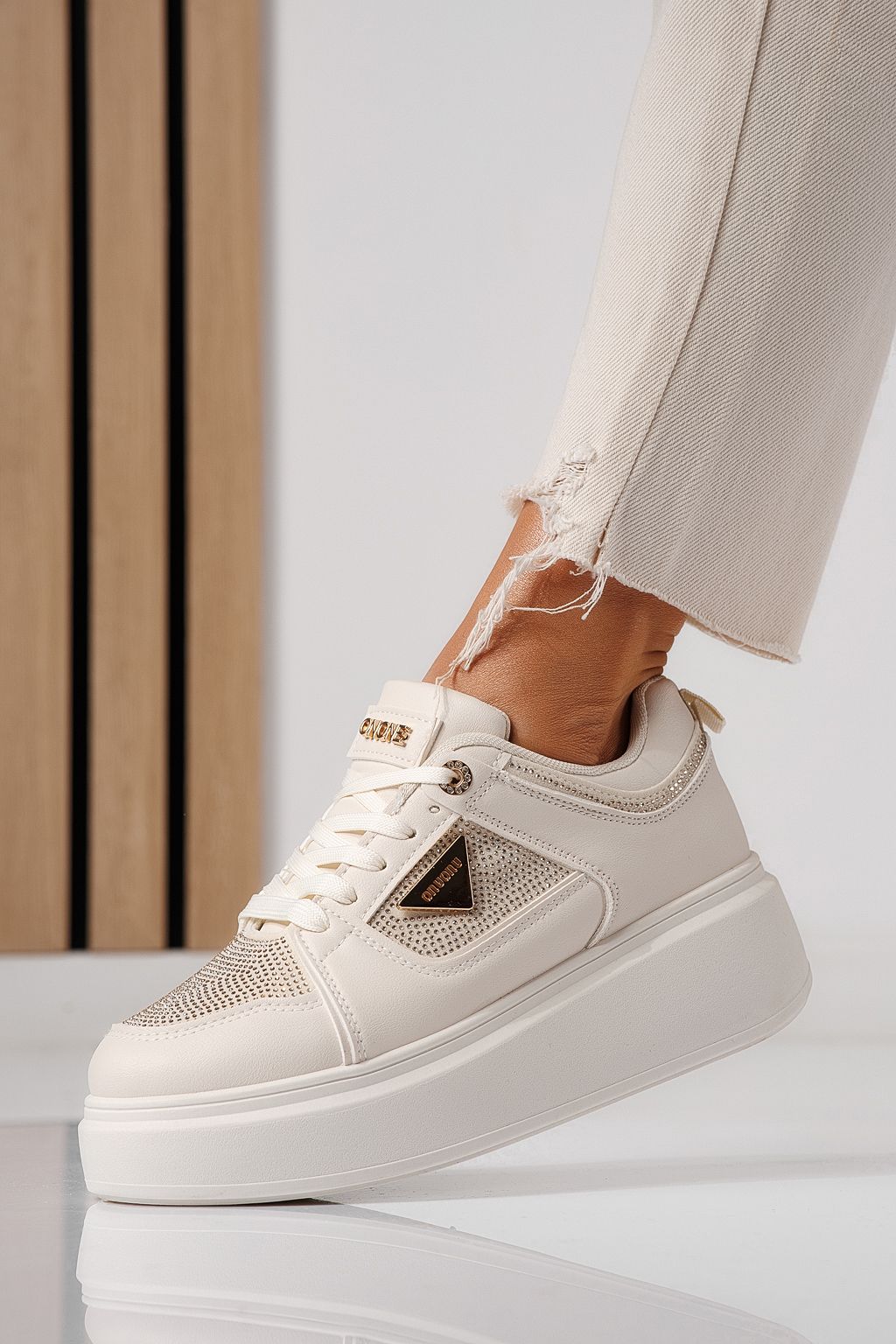 Дамски маратонки бежови от еко кожа Delia #24081