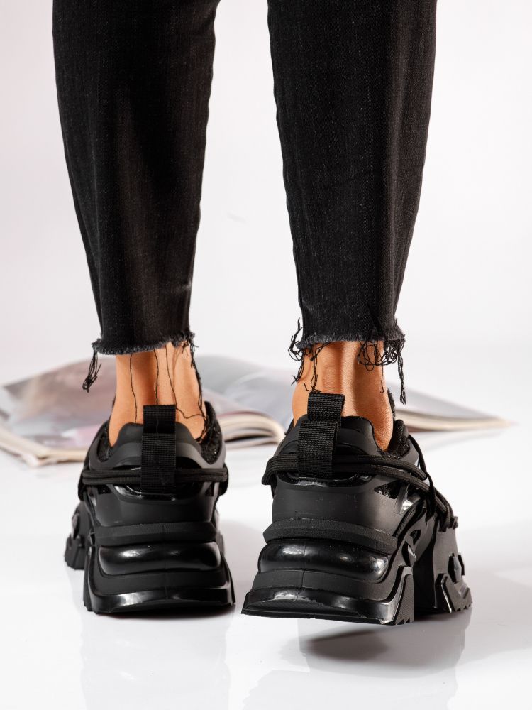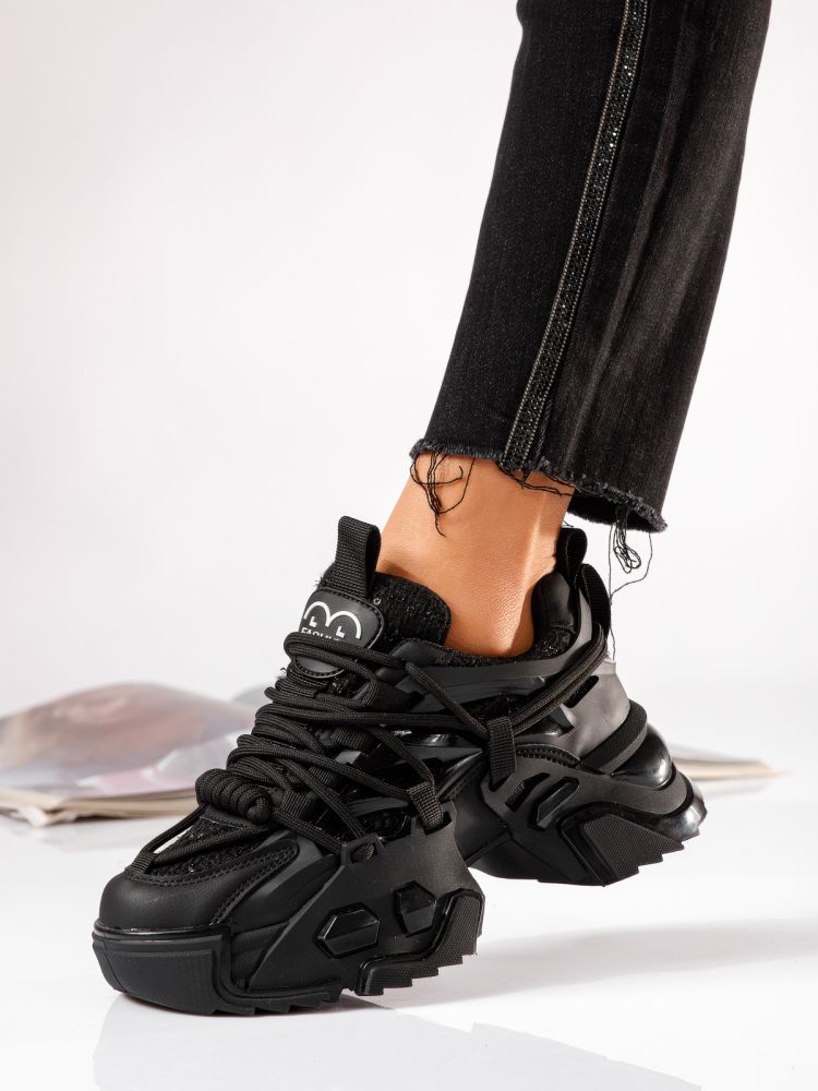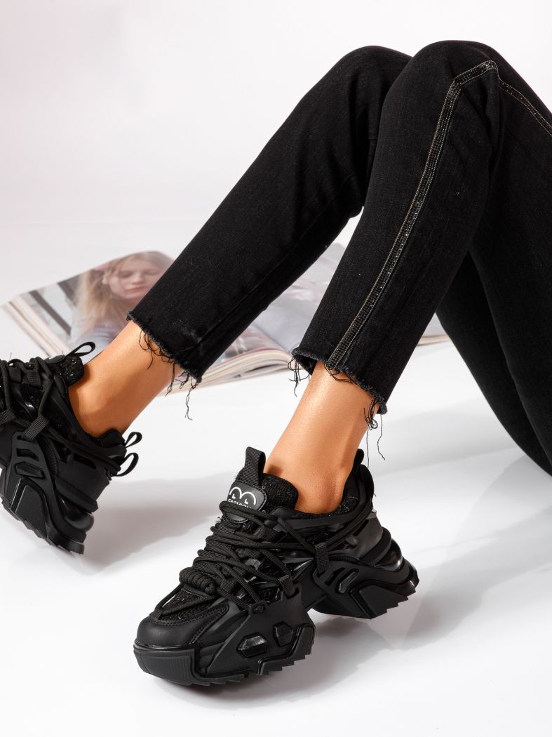 Дамски черни текстилни маратонки Eva #24082