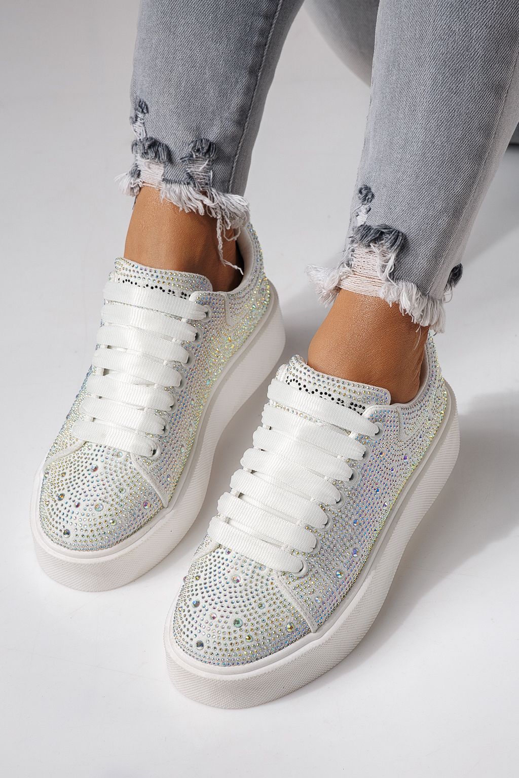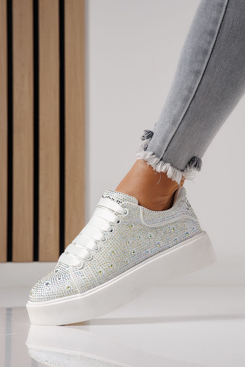 Дамски маратонки бели от текстилен материал Ellania #24090