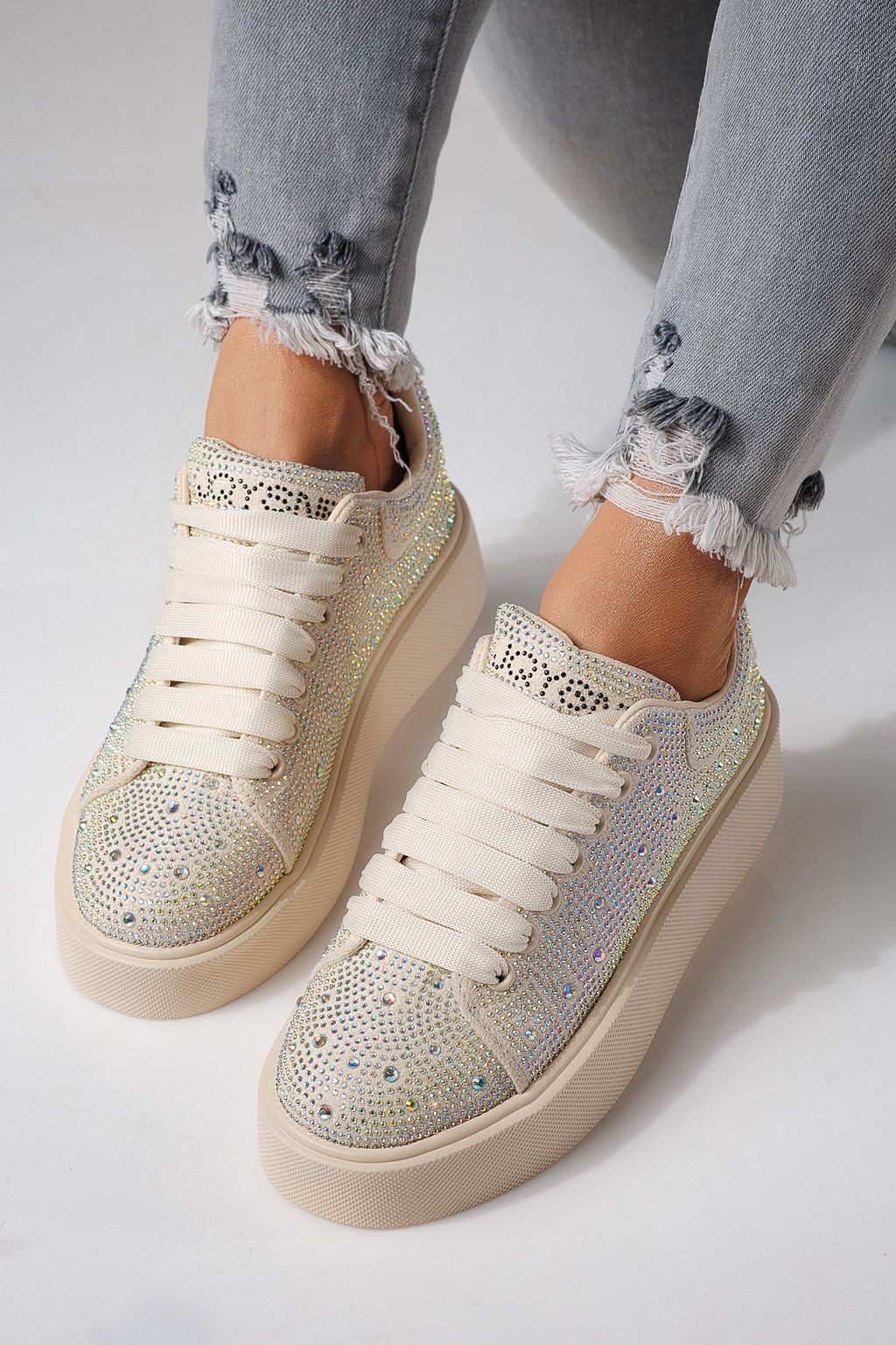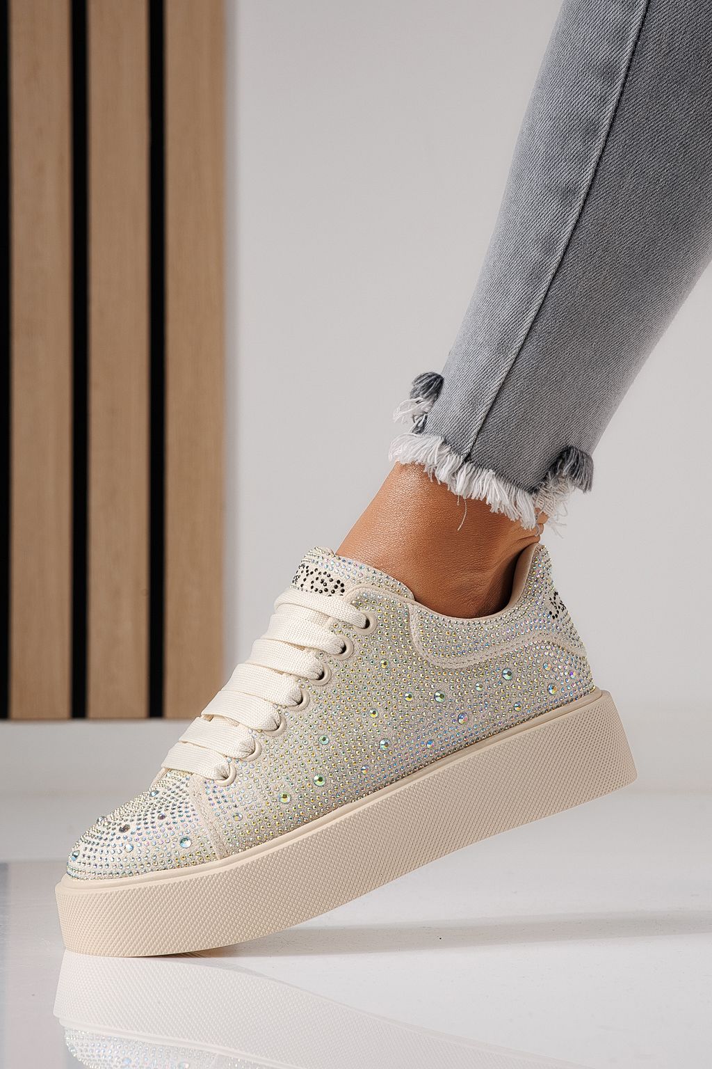 Дамски маратонки бежови от текстилен материал Ellania #24091