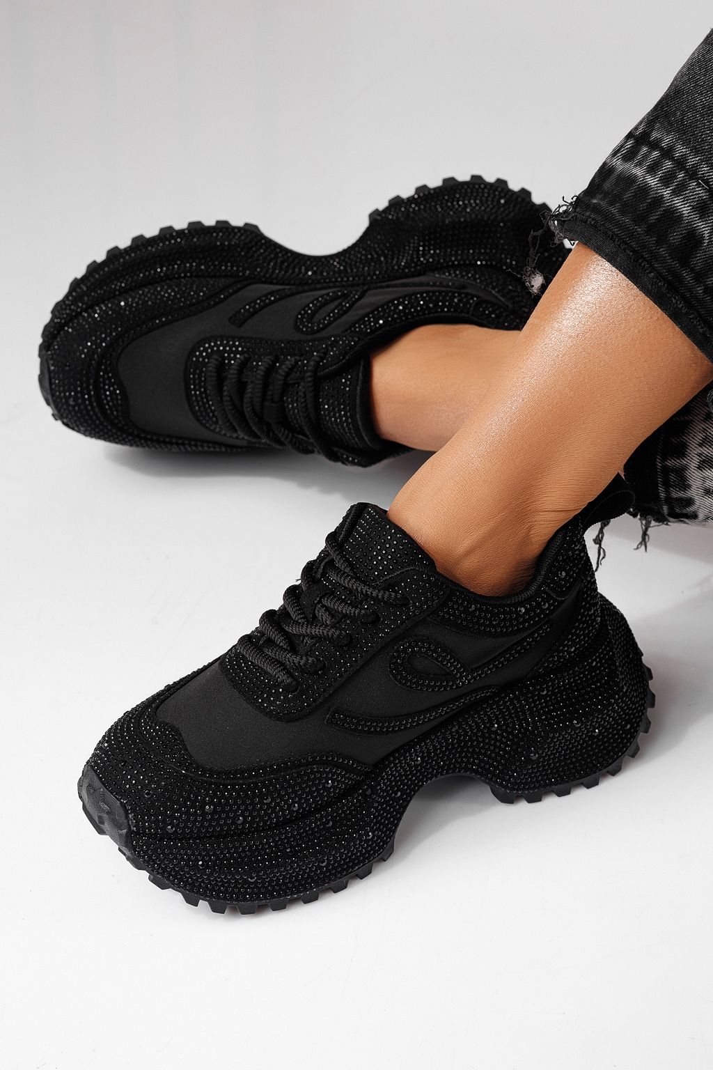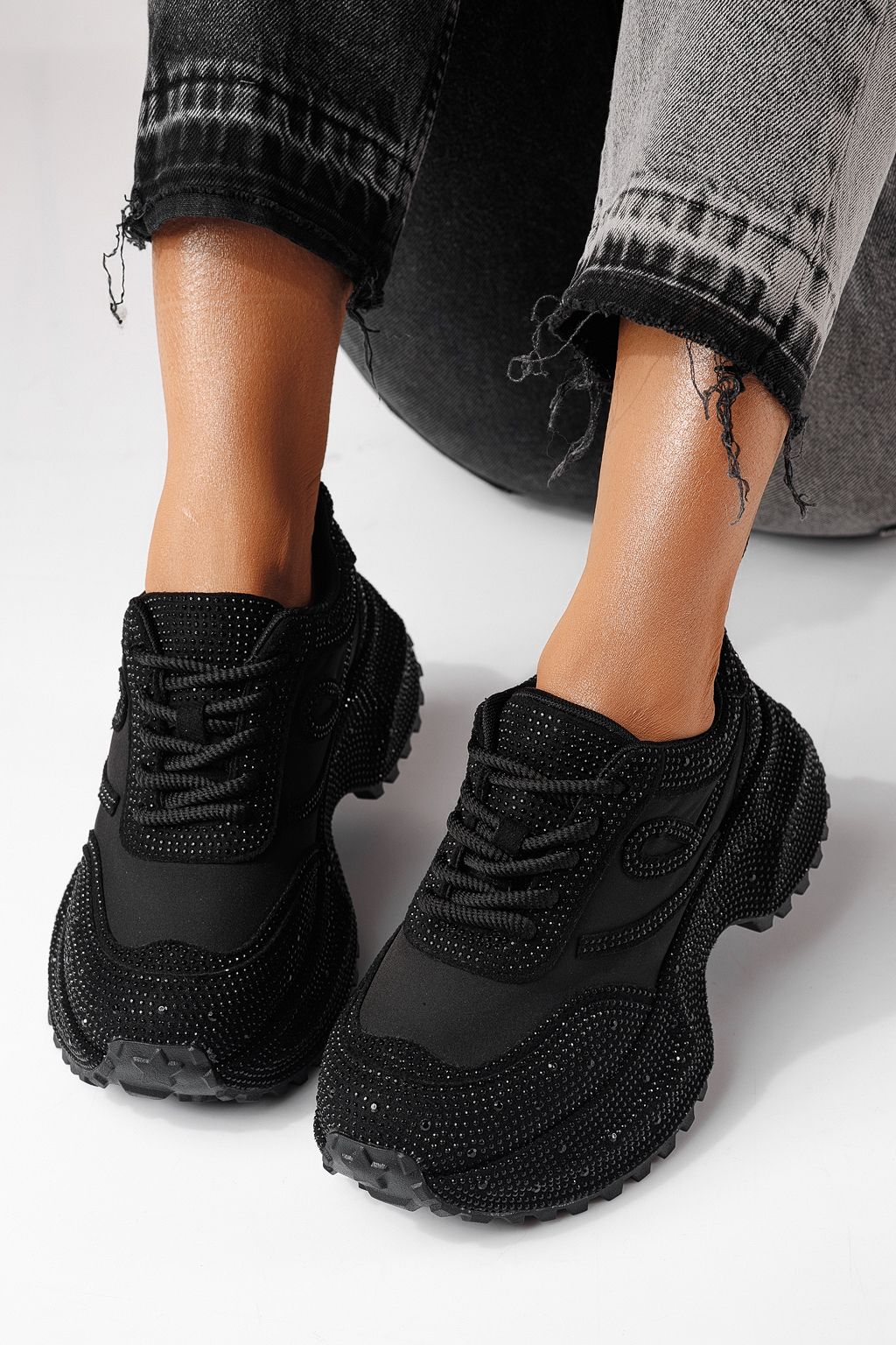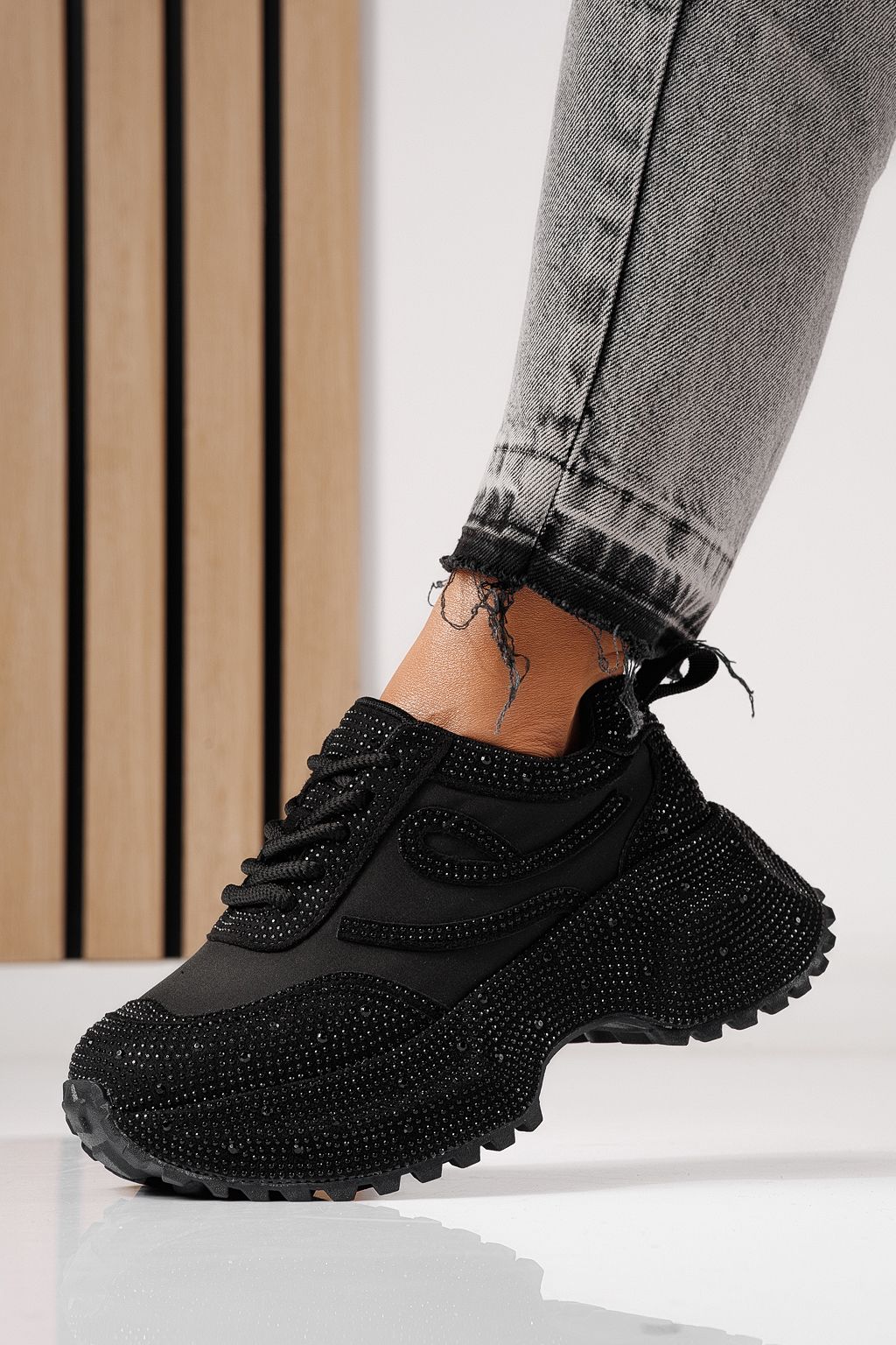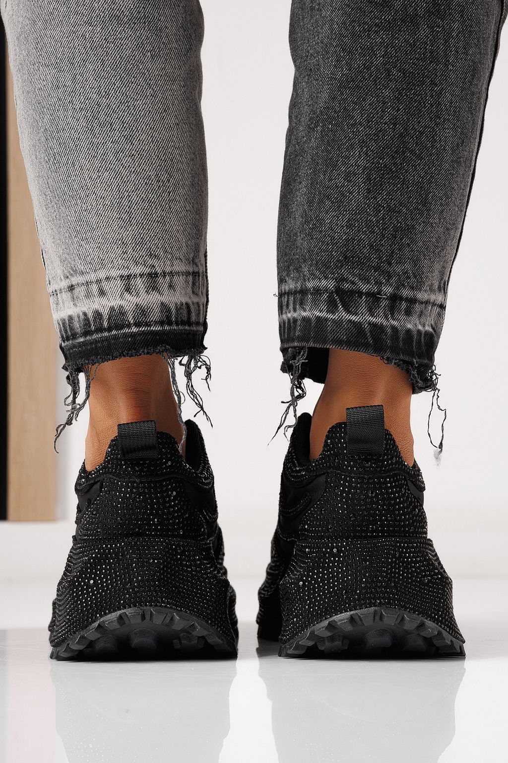 Дамски маратонки черни от обърната еко кожа Ioana #24110