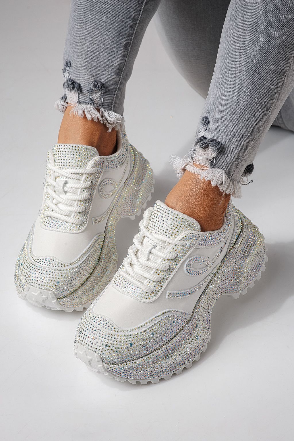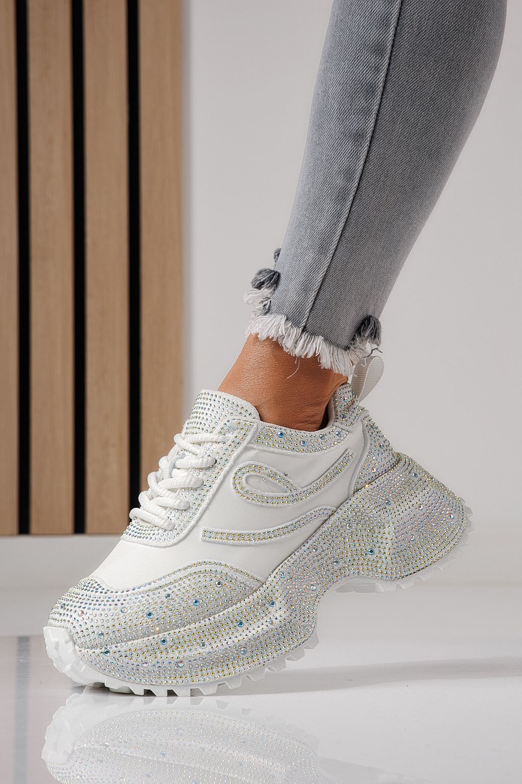 Дамски маратонки бели от обърната еко кожа Ioana #24111