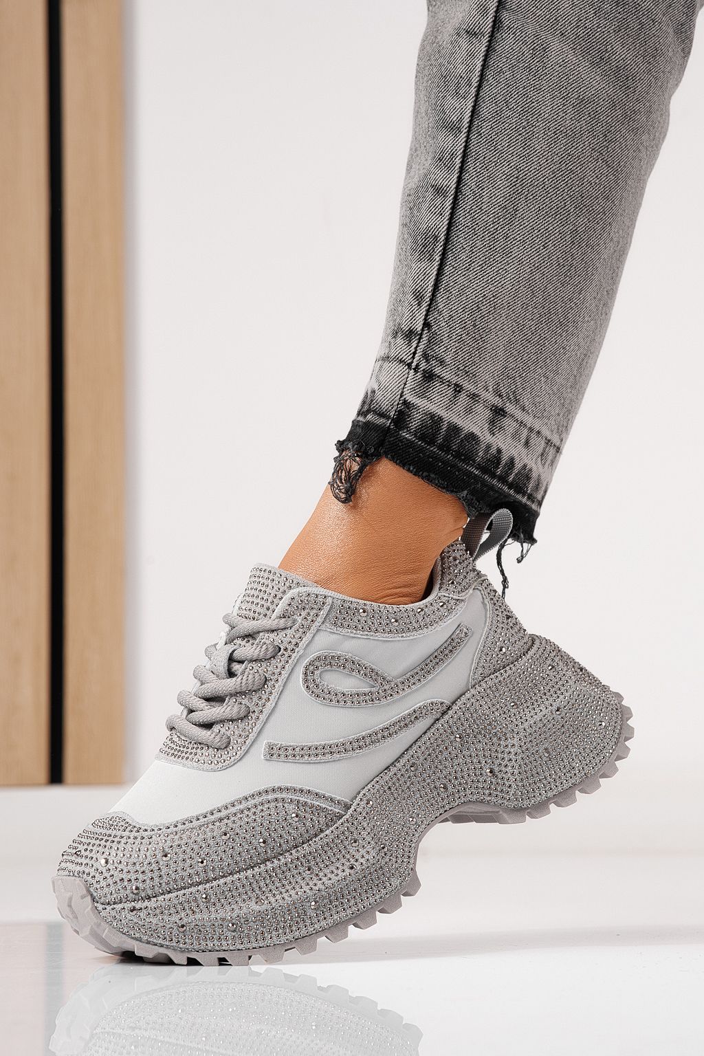 Дамски маратонки сиви от обърната еко кожа Ioana #24112