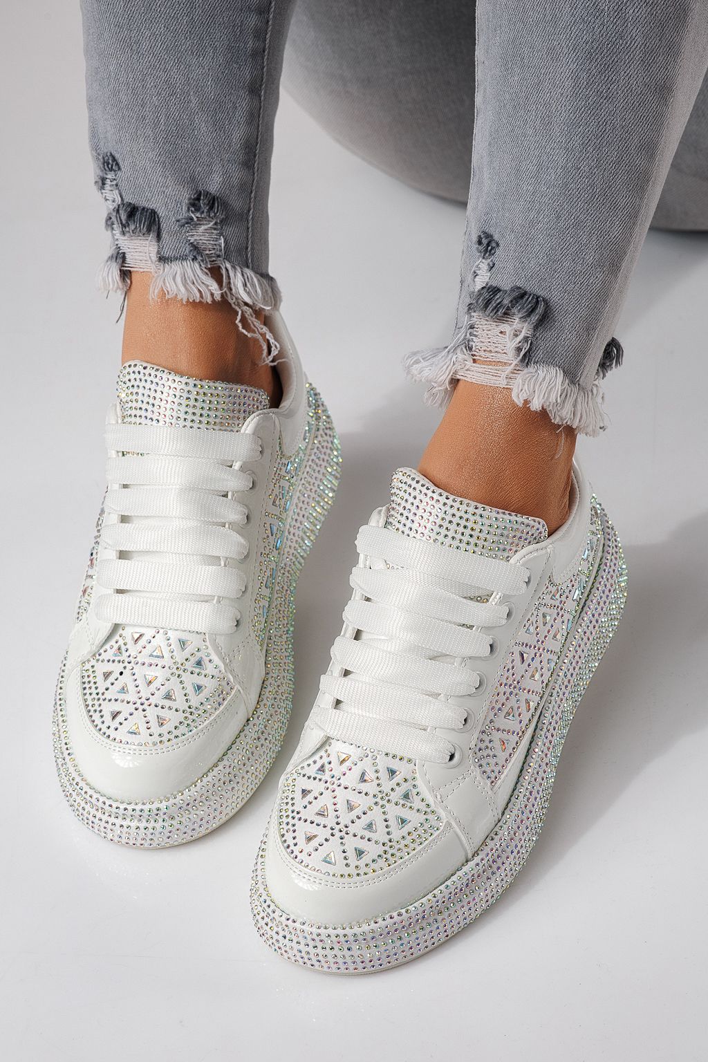 Начало Всички продукти Дамски кецове Дамски маратонки бели от обърната еко кожа Ilinca #24117
