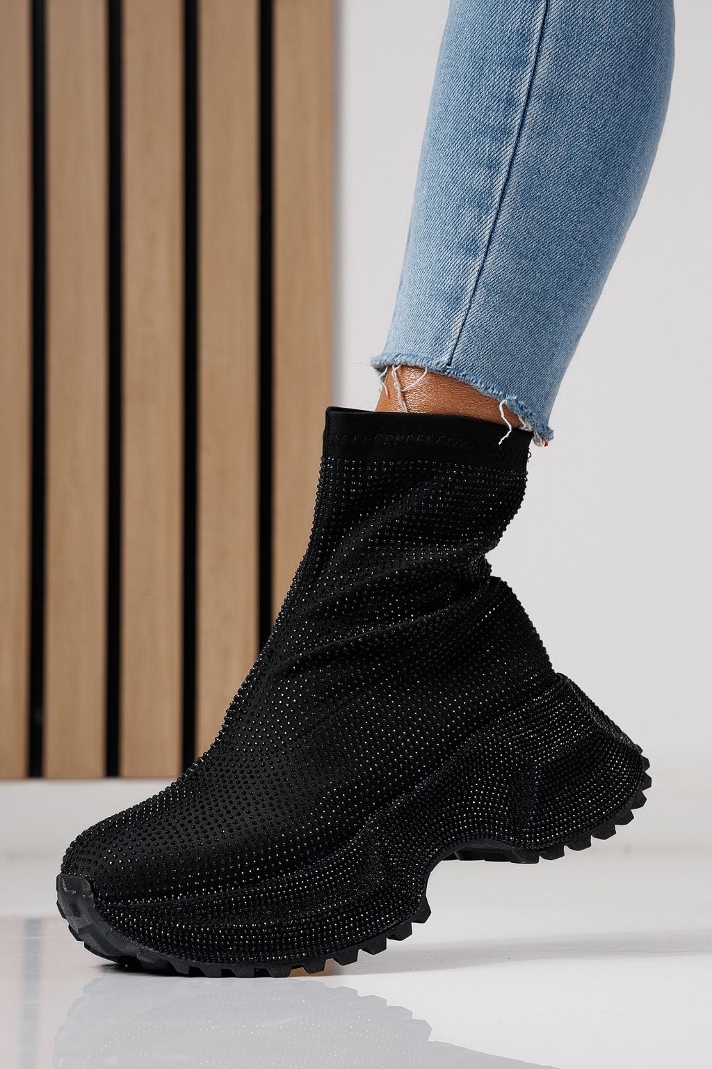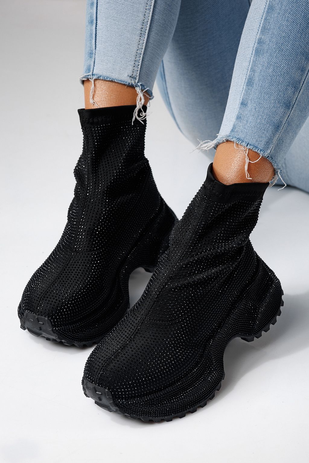 Начало Всички продукти Дамски кецове Дамски маратонки черни от текстилен материал Ines #24120