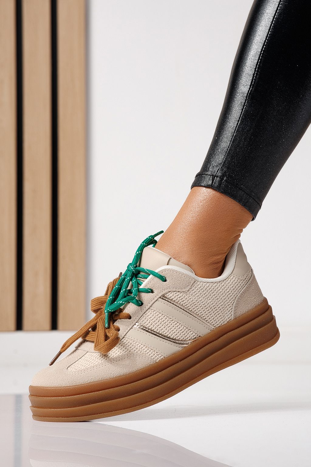 Начало Всички продукти Дамски кецове Дамски маратонки бежови от обърната еко кожа Karina #24135