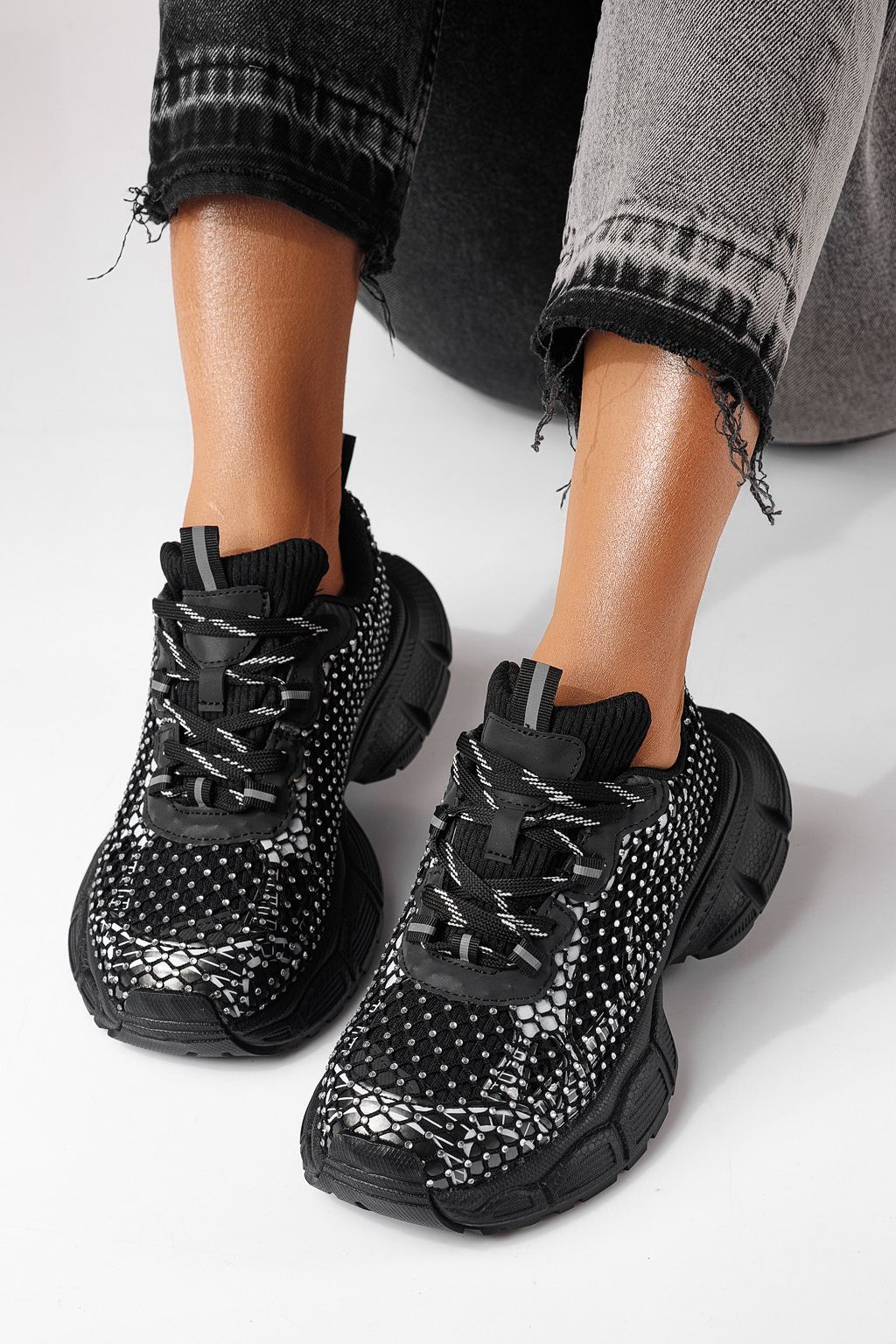 Дамски маратонки черни от текстилен материал Lilien #24149