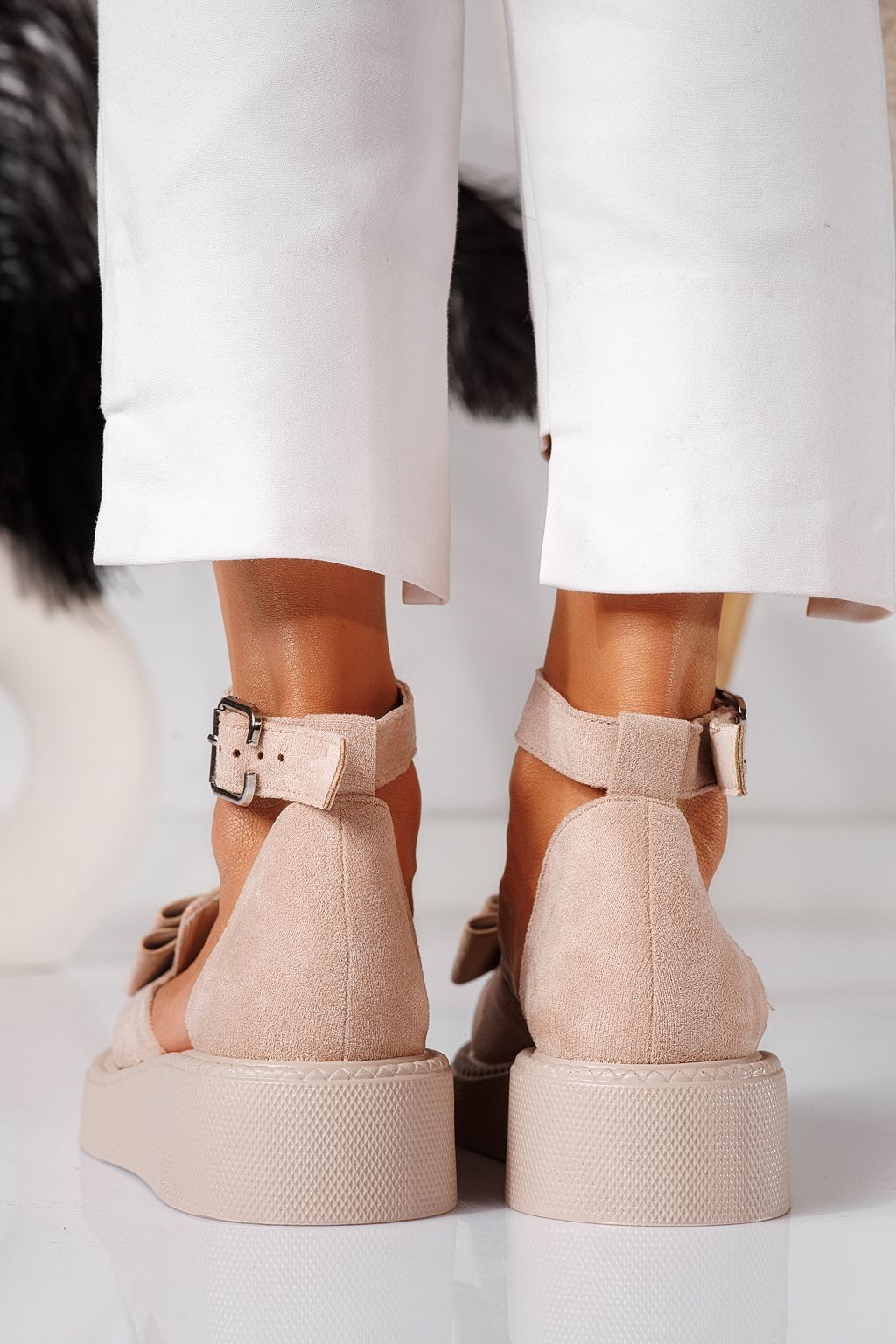 Всекидневни дамски обувки бежови от обърната еко кожа Willy #24221