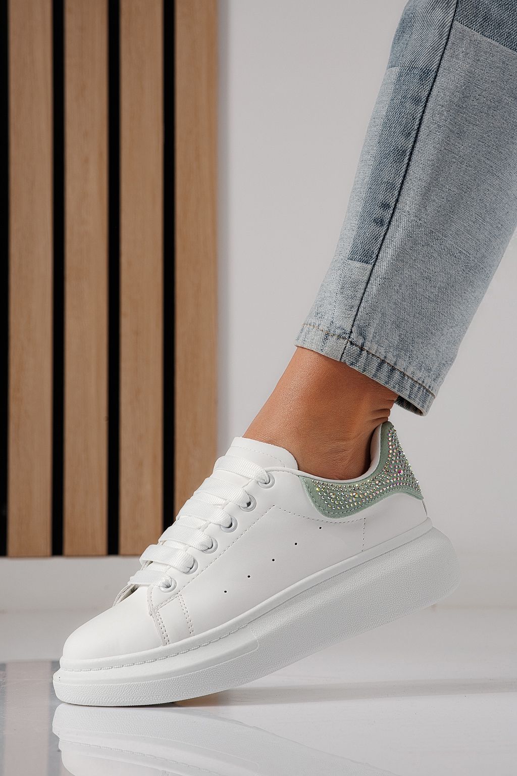 Начало Всички продукти Дамски кецове Дамски маратонки бели със зелено от еко кожа Raya #24233