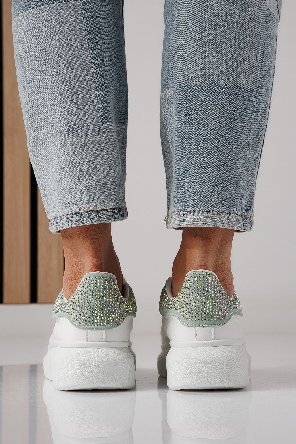 Дамски маратонки бели със зелено от еко кожа Raya #24233