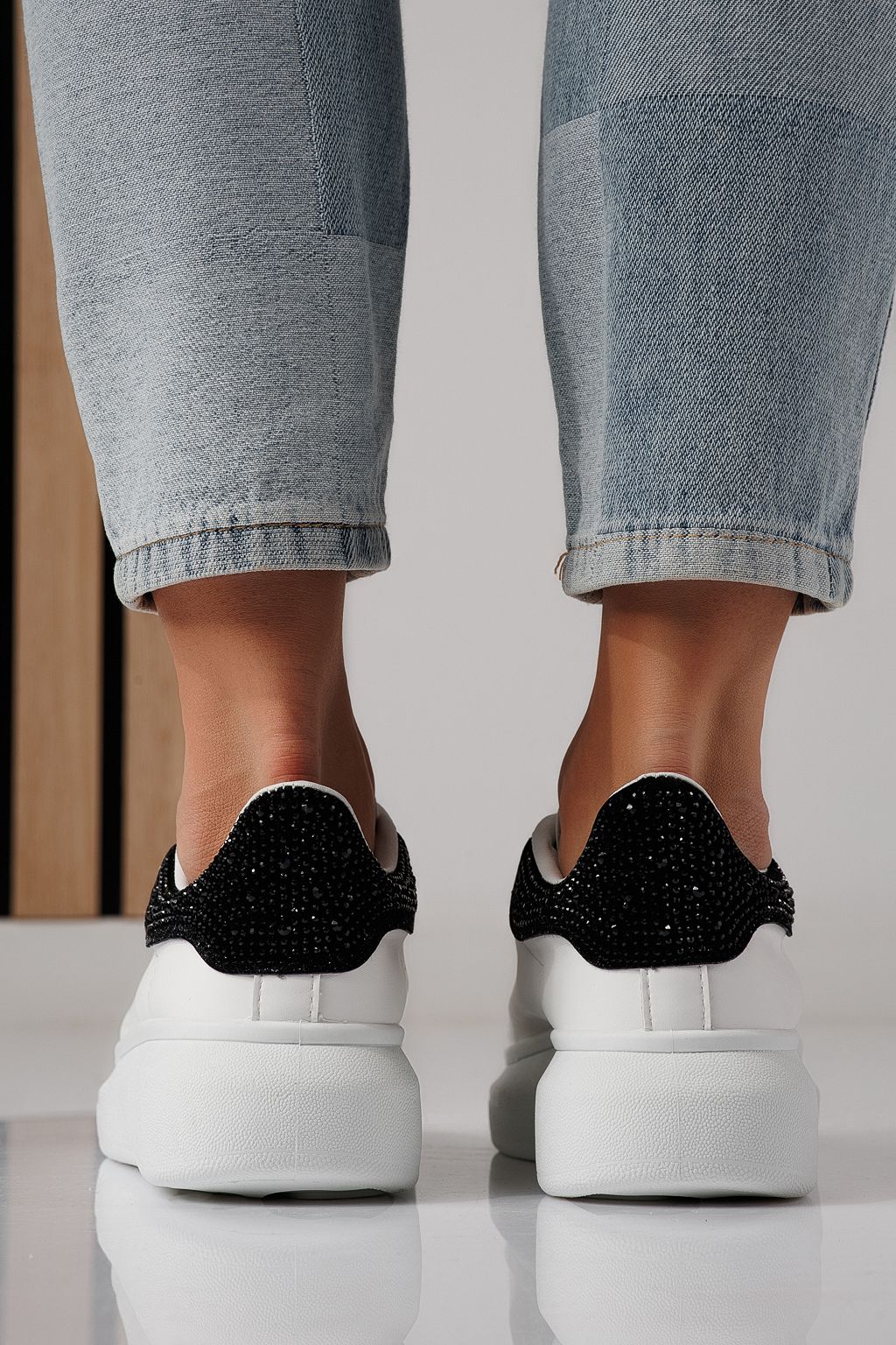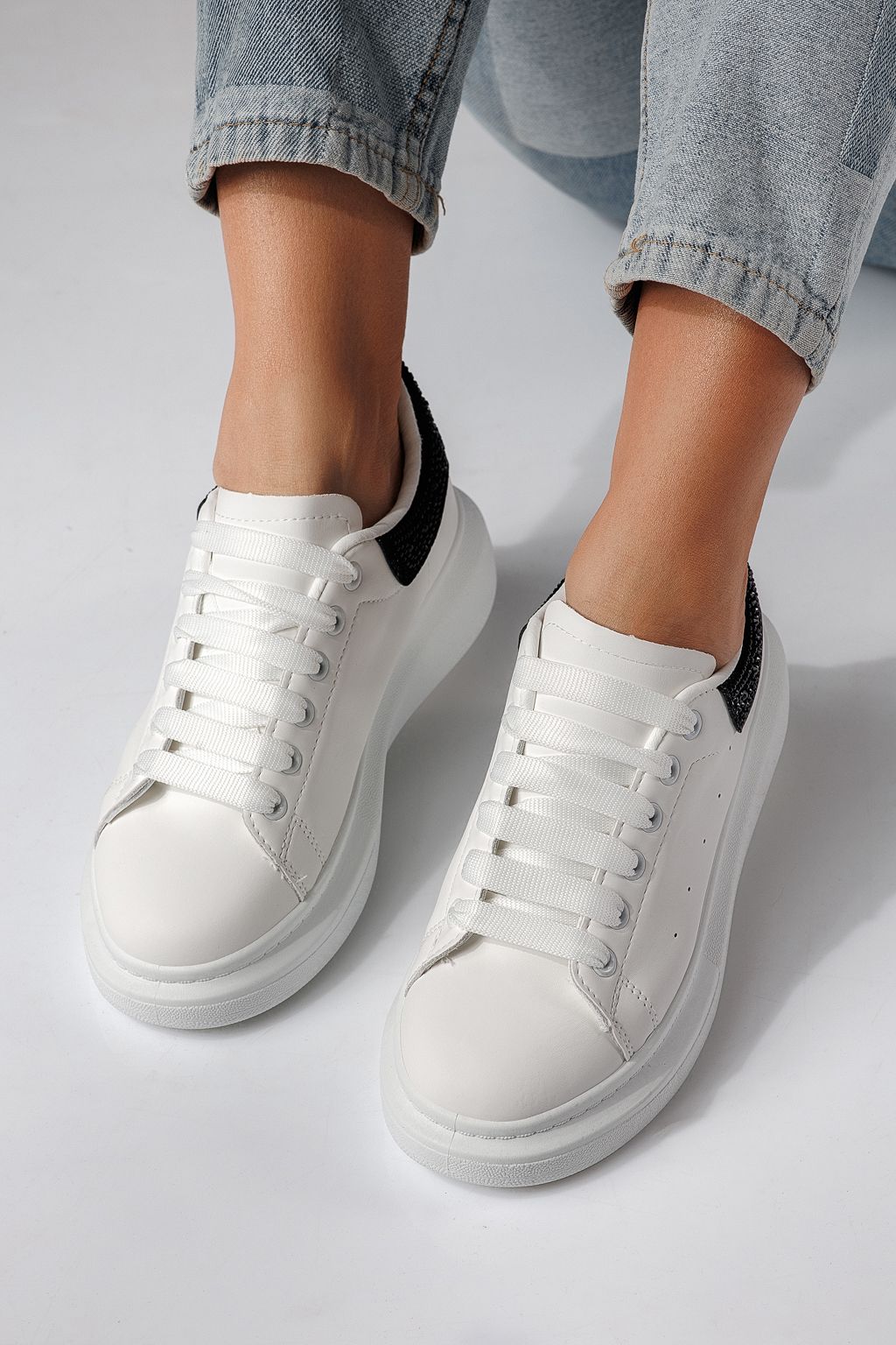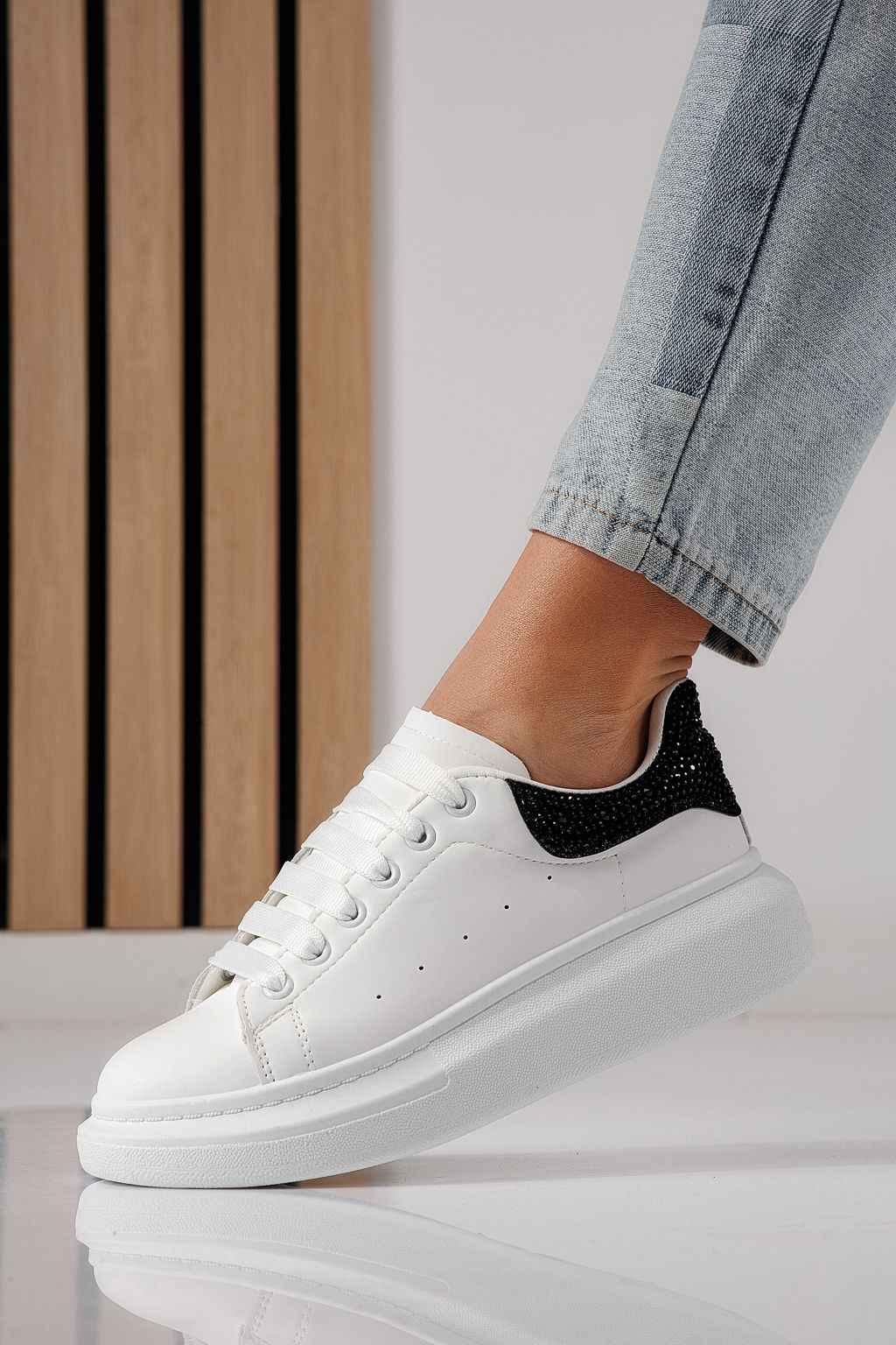 Начало Всички продукти Дамски кецове Дамски маратонки бели с черно от еко кожа Raya #24236