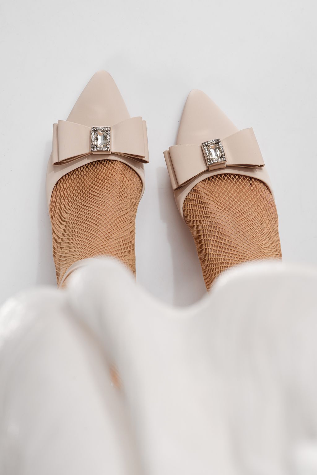 Дамски обувки с ток бежови от еко кожа Ariel #24247
