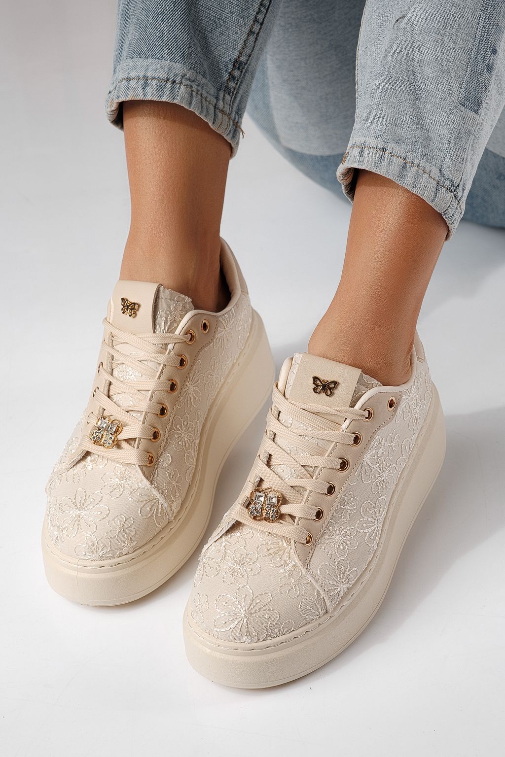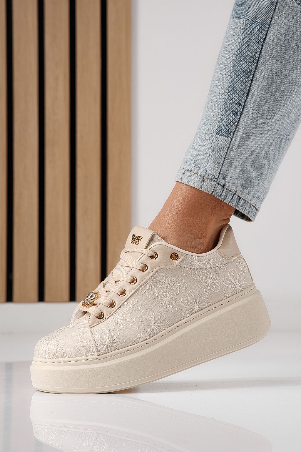 Дамски маратонки бежови от текстилен материал Carla #24291