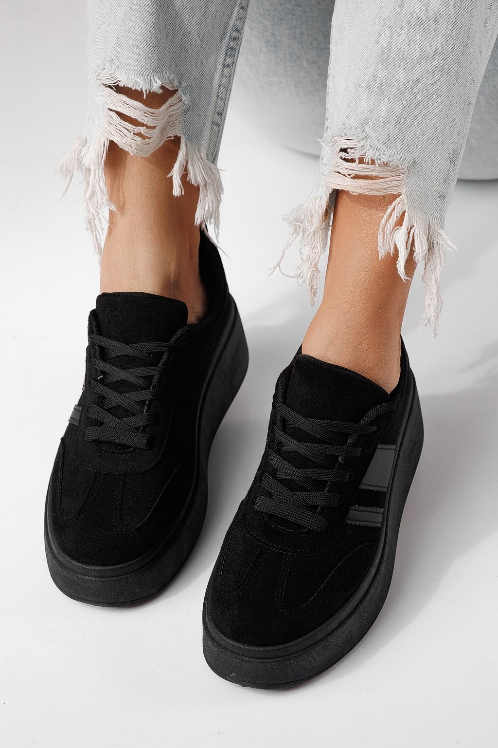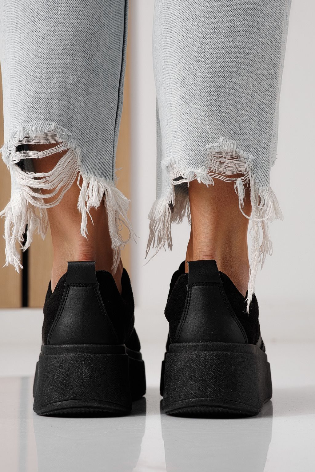 Дамски маратонки черни от обърната еко кожа Diana #24301