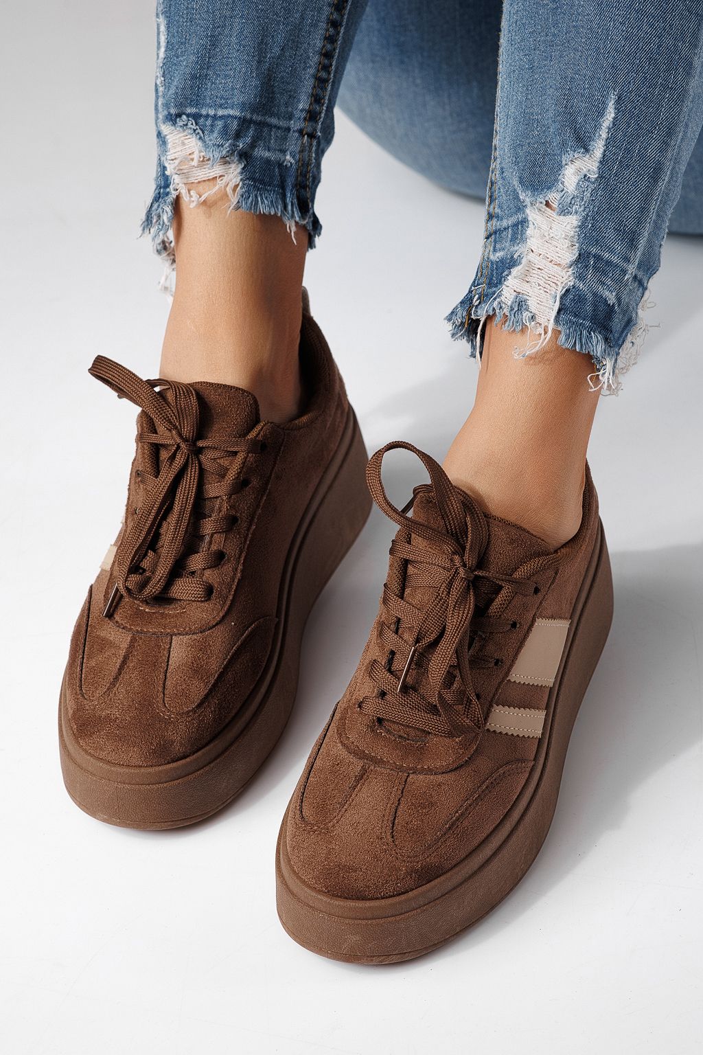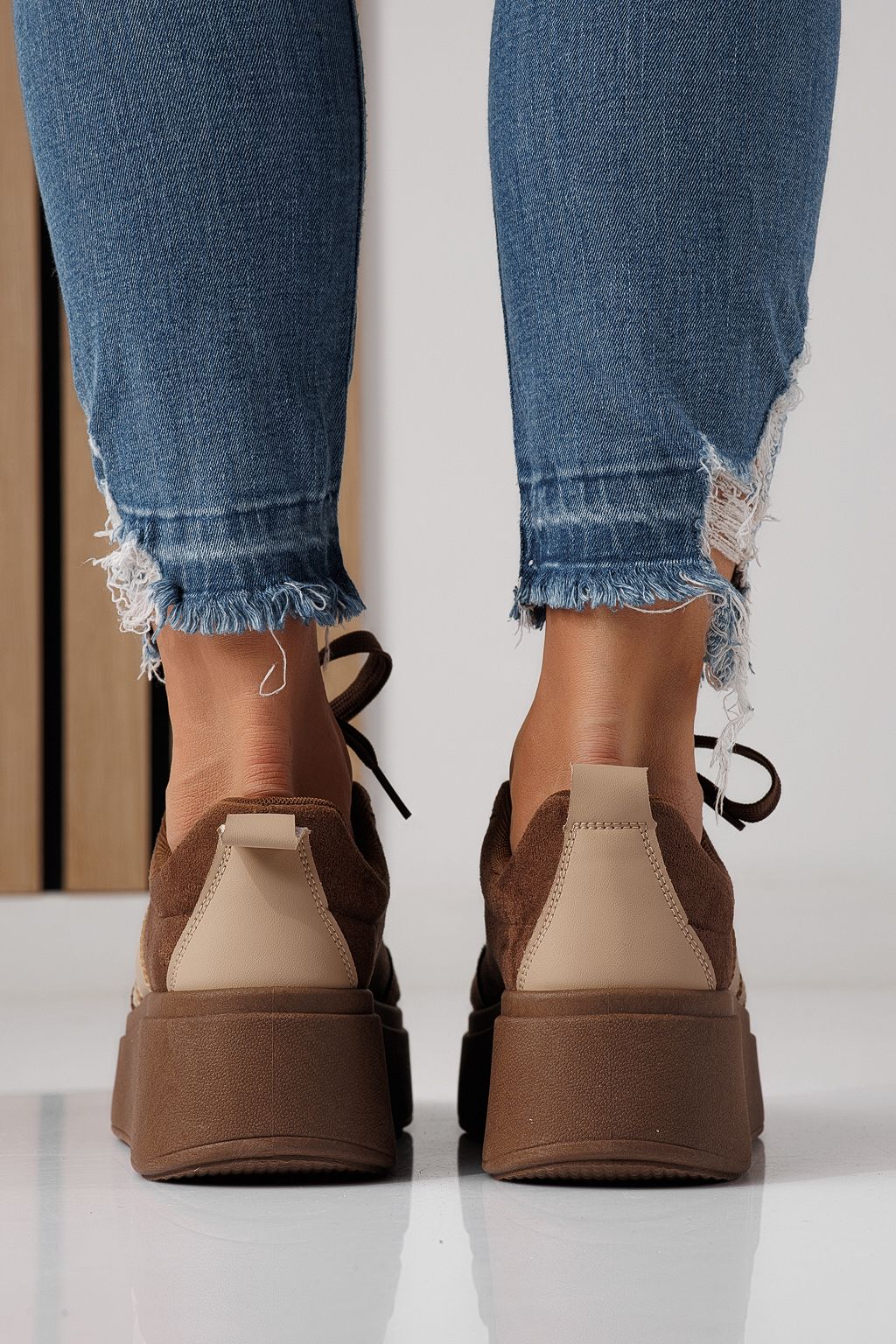 Дамски маратонки кафяви от обърната еко кожа Diana #24303