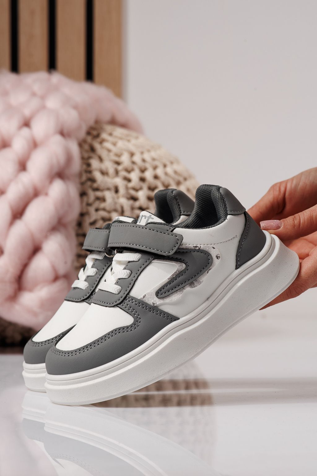 Детски маратонки сиви от еко кожа Isabella #24361