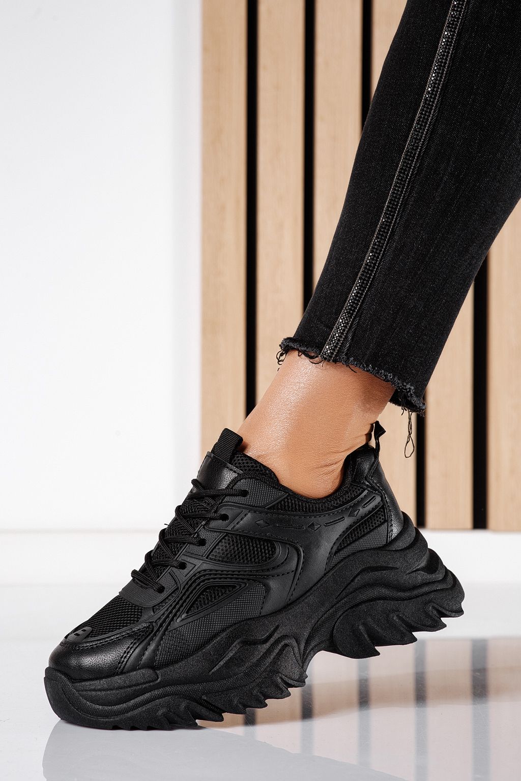 Начало Всички продукти Дамски кецове Дамски Спортни Обувки Дамски маратонки черни от текстилен материал Edith #24453