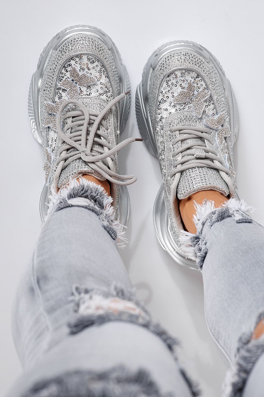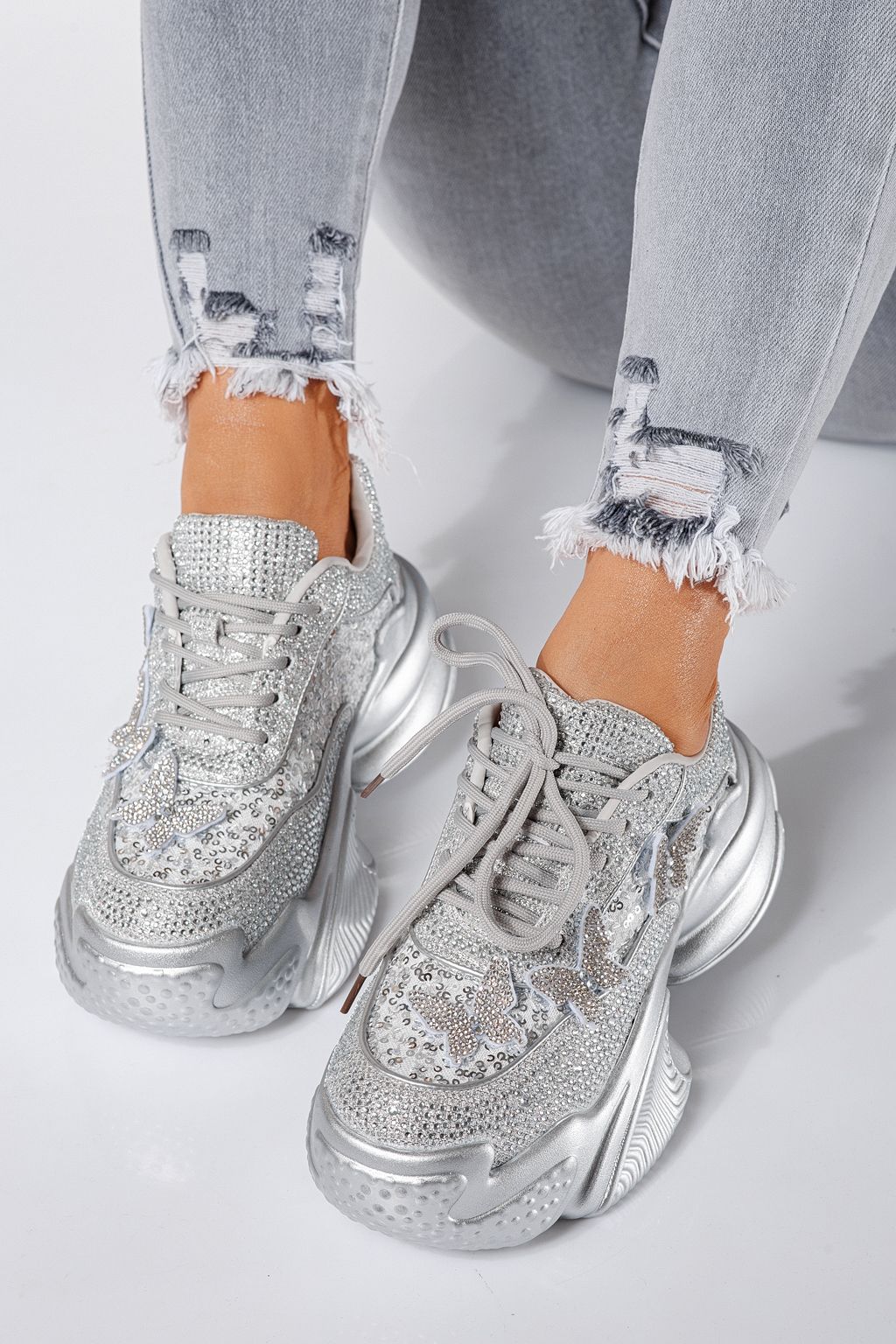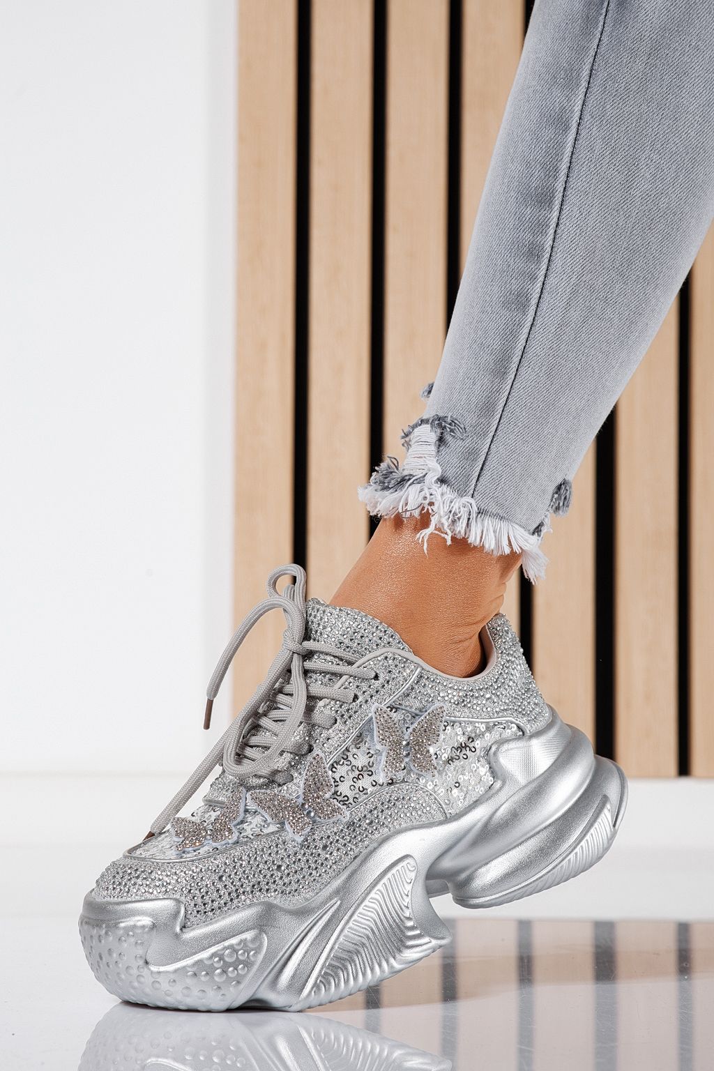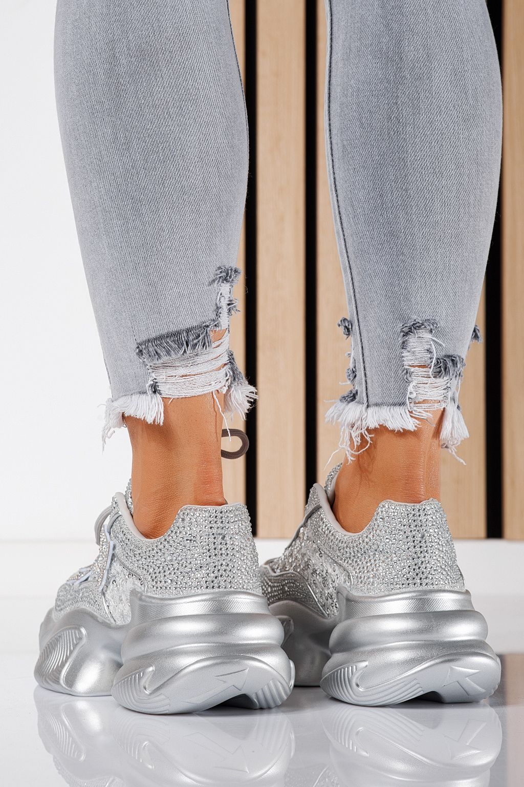 Дамски маратонки сребристи от текстилен материал Evelyn #24533