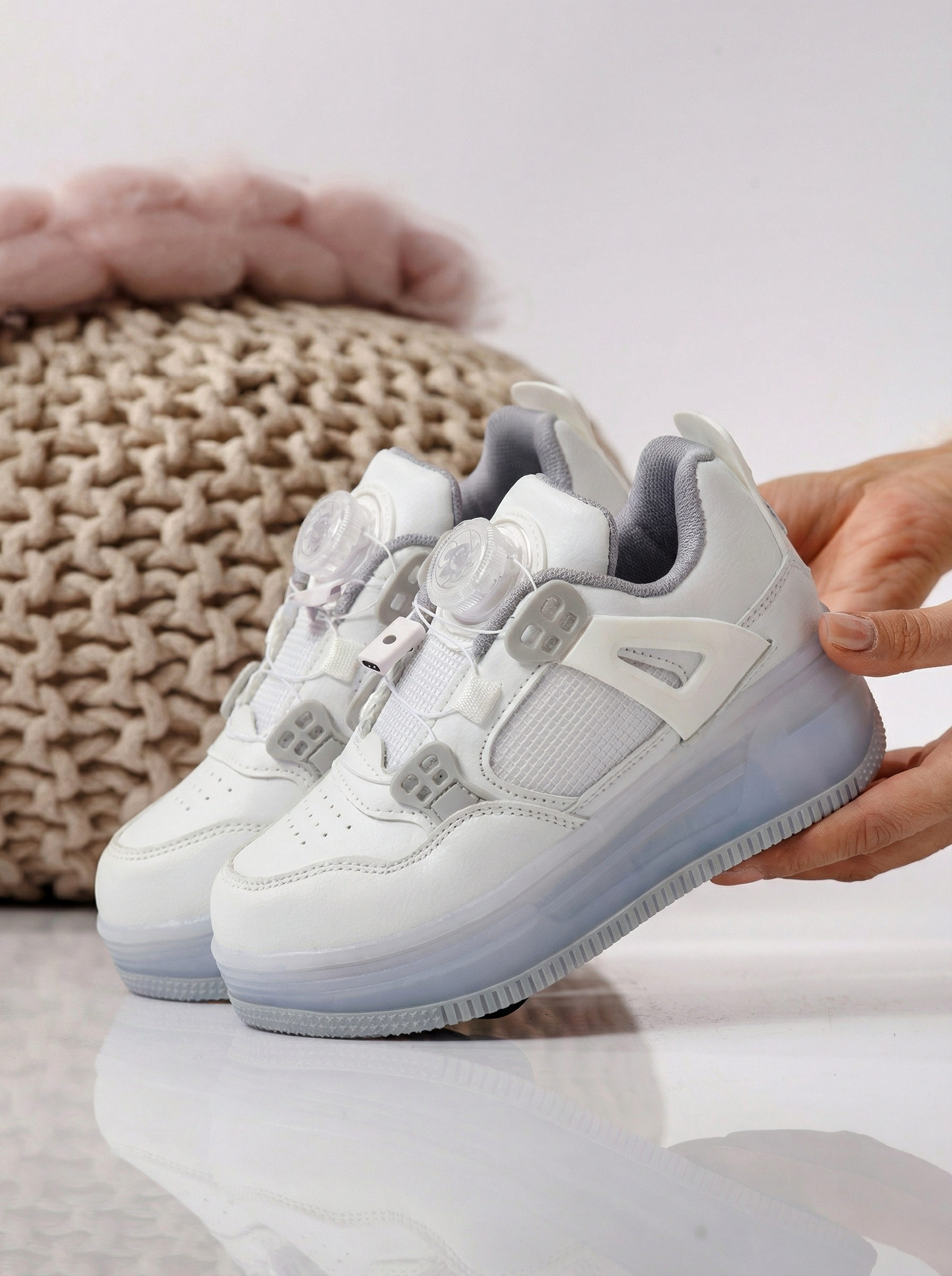 Маратонки с колелца бели от еко кожа Helys2 #24571