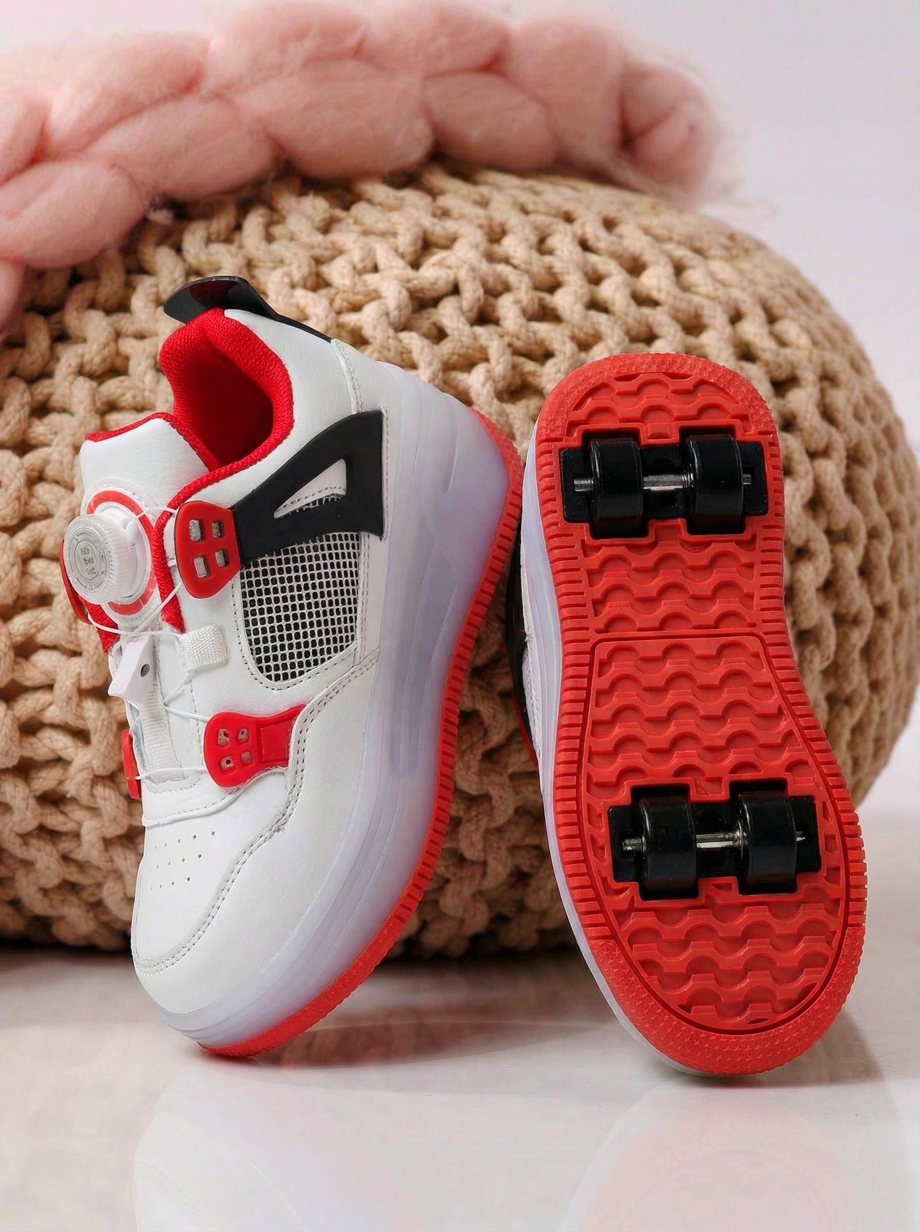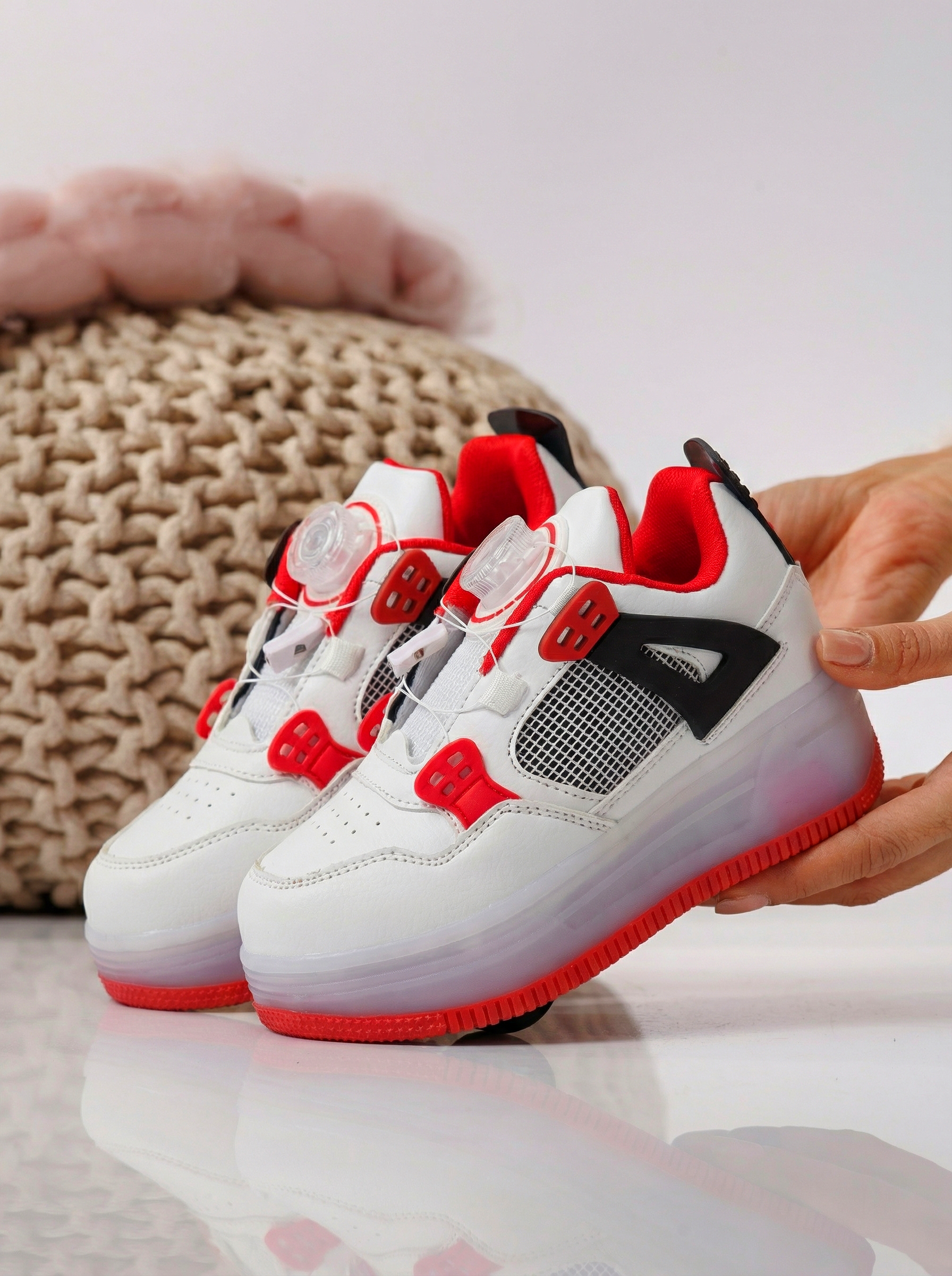 Маратонки с колелца червени от еко кожа Helys2 #24574