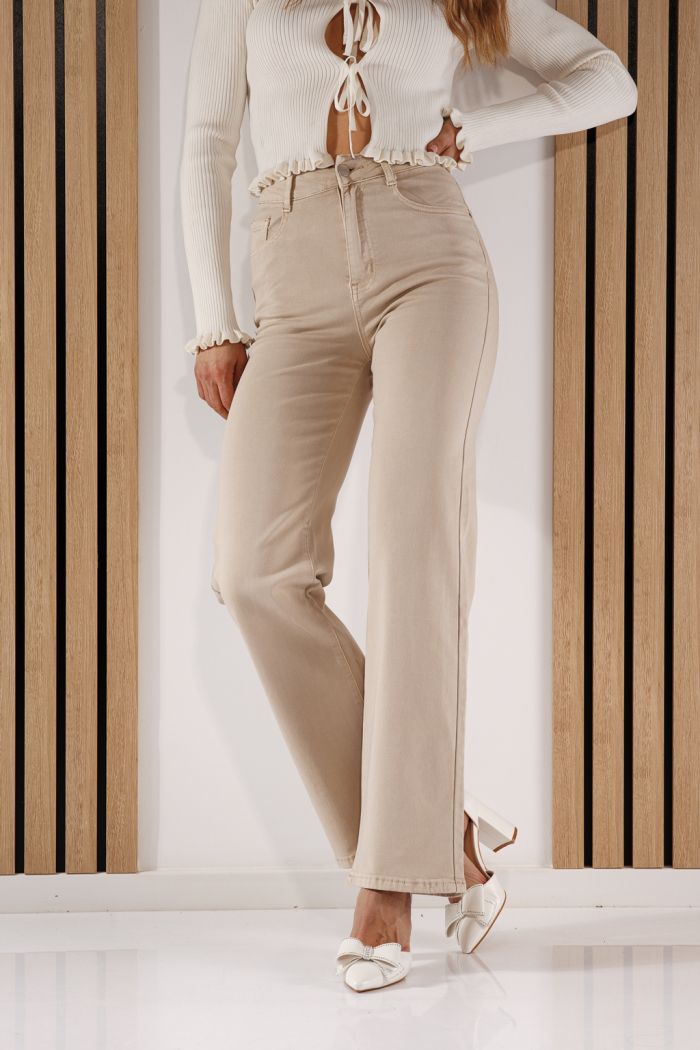 Разкроени Дамски Дънки Darcy бежови #A1404