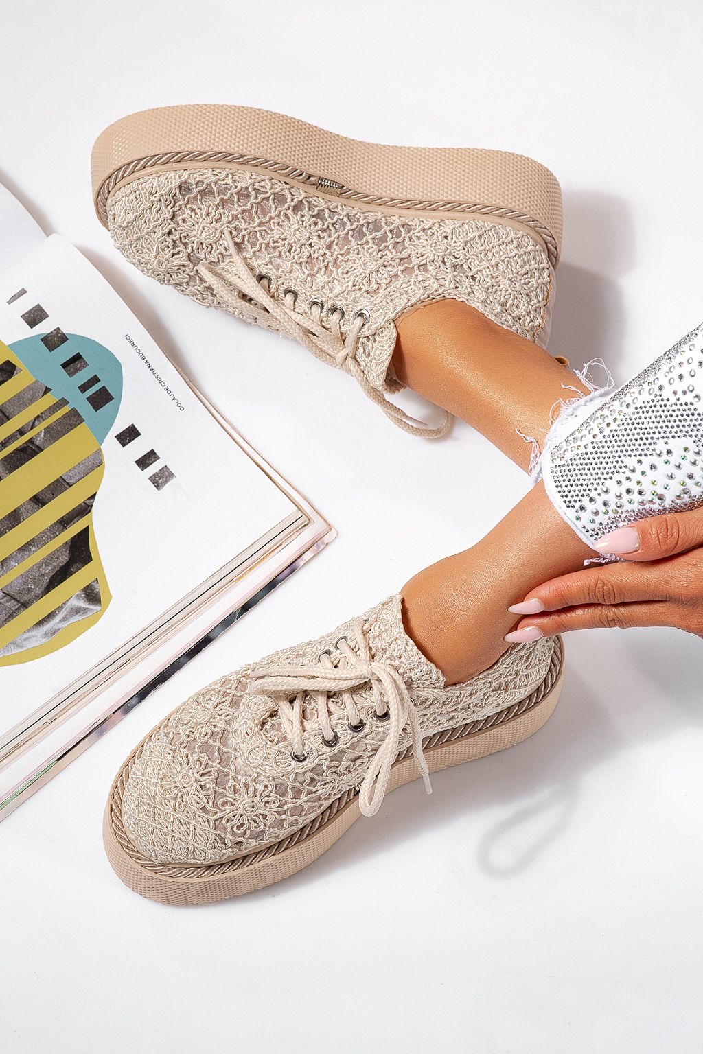 Всекидневни дамски обувки бежови от текстилен материал Asha #24614