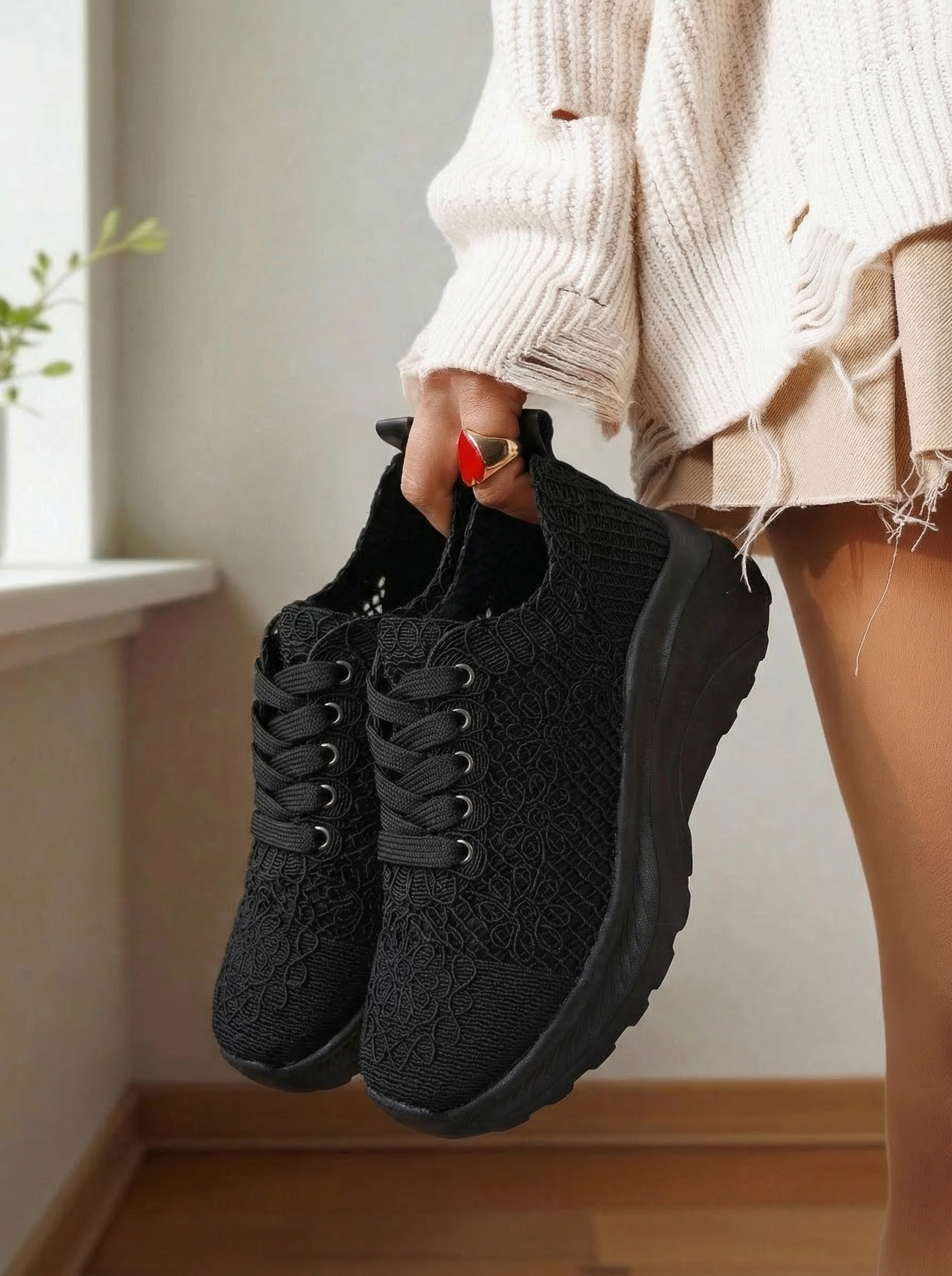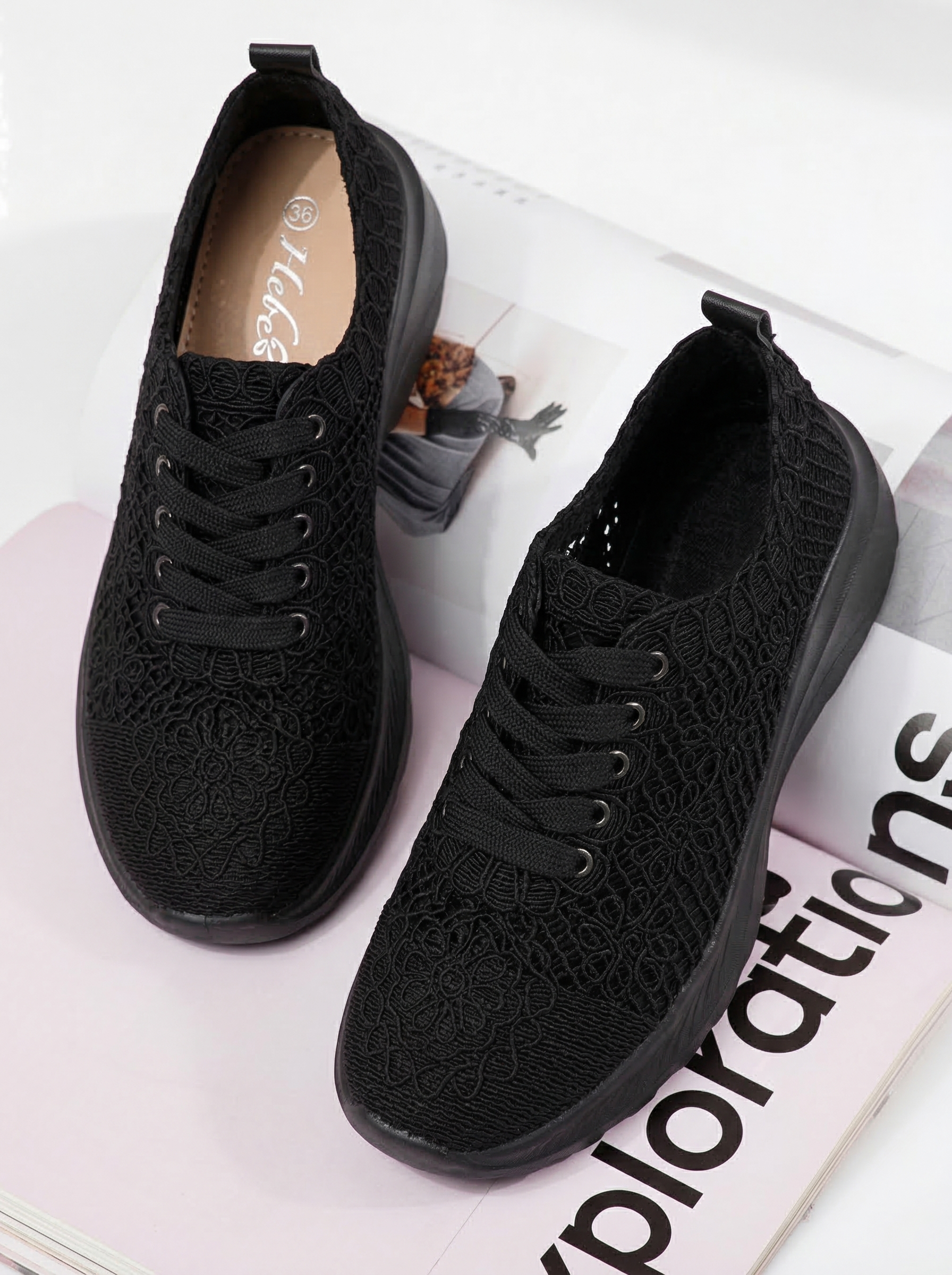 Начало Всички продукти Дамски кецове Дамски Спортни Обувки Дамски черни текстилни маратонки Yuri #24656