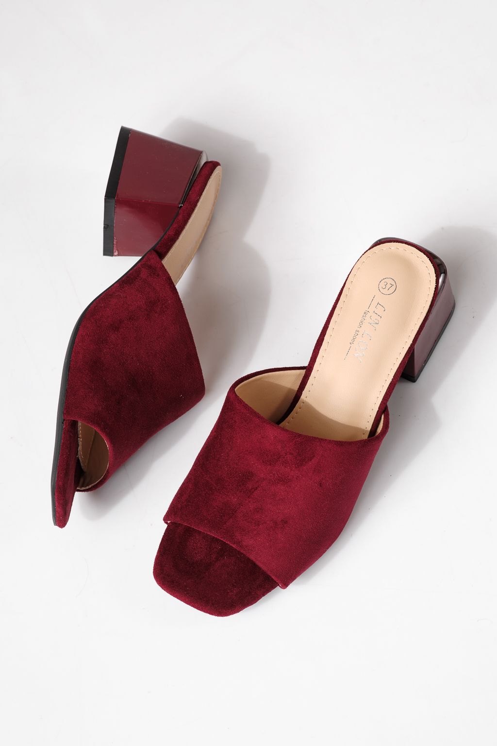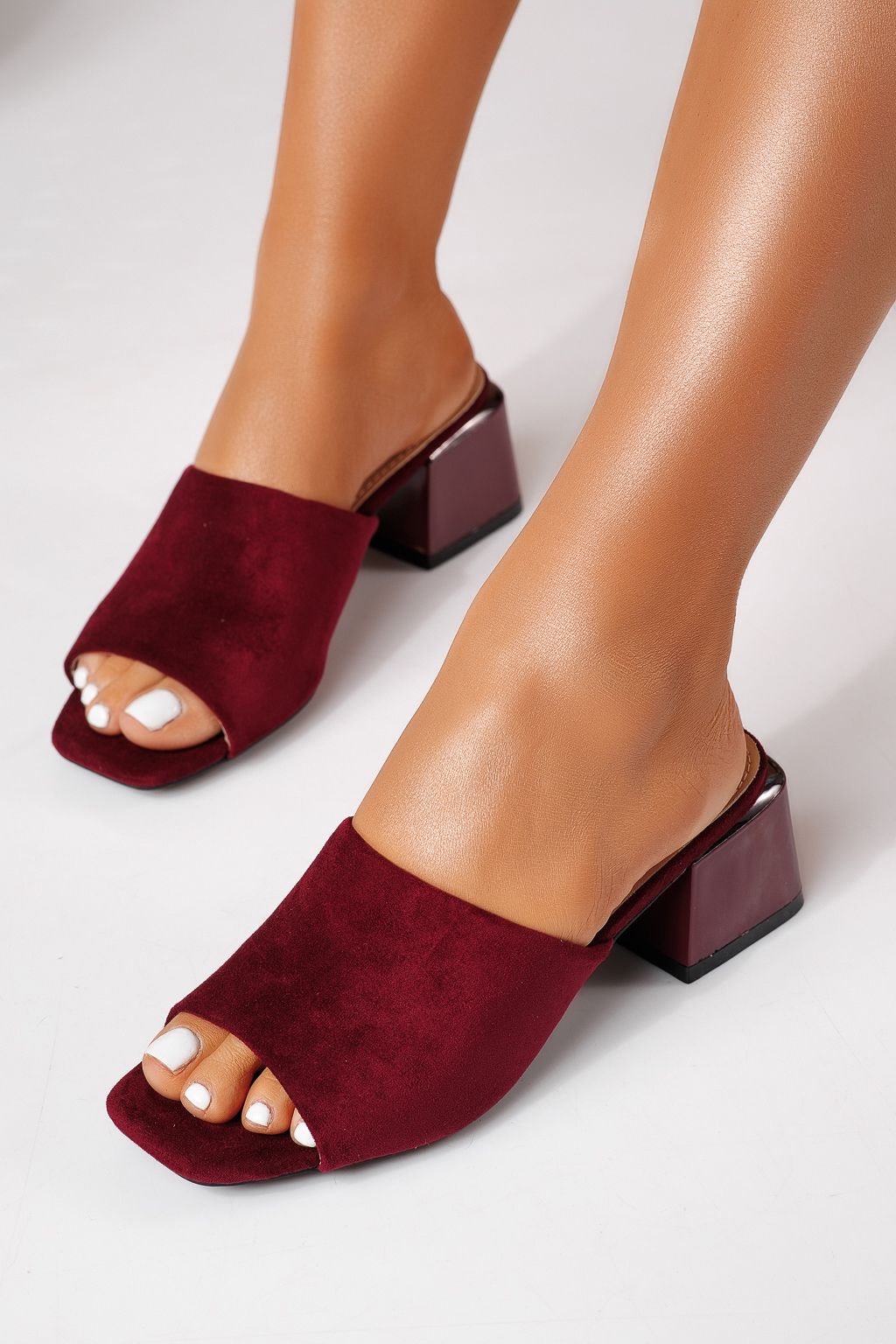 Дамски чехли с ток бордо от обърната еко кожа Thalira #24705