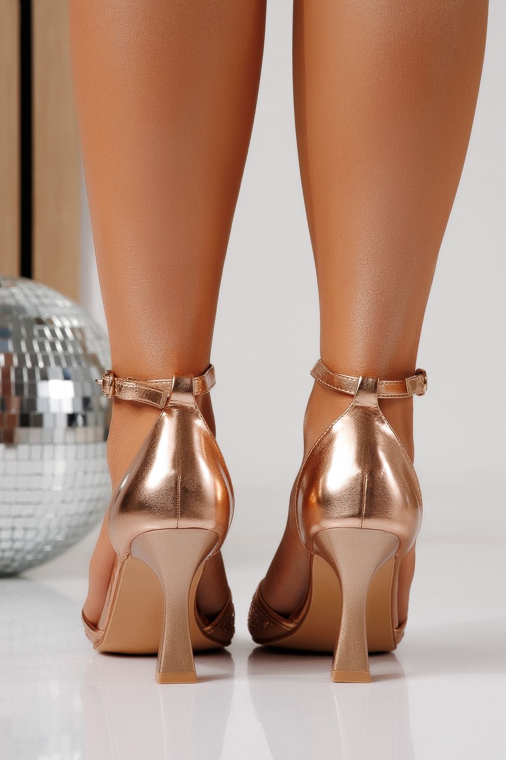 Начало Всички продукти сандали за жени Сандали с Ток Дамски сандали с ток розово-златисти от еко кожа Lyra #24862