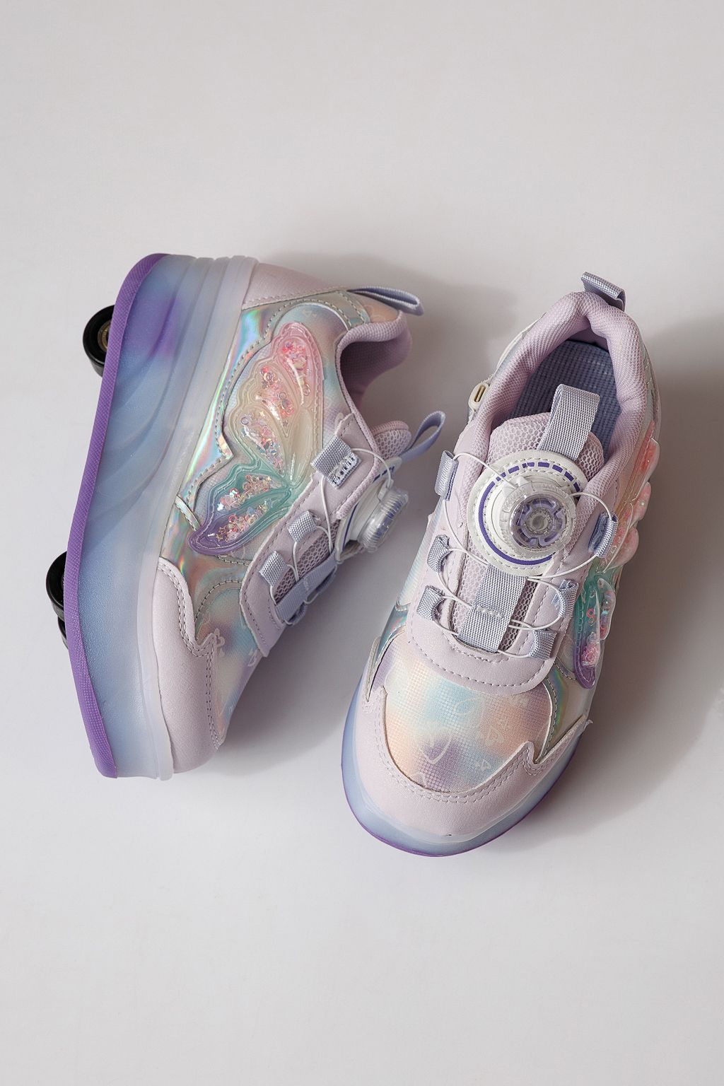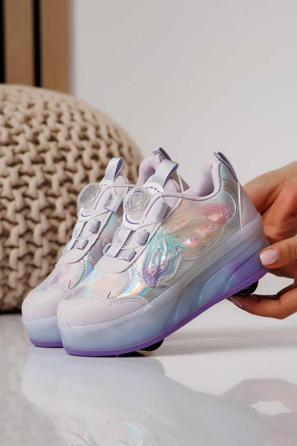 Маратонки с колелца лилави от текстилен материал Helys3 #24868