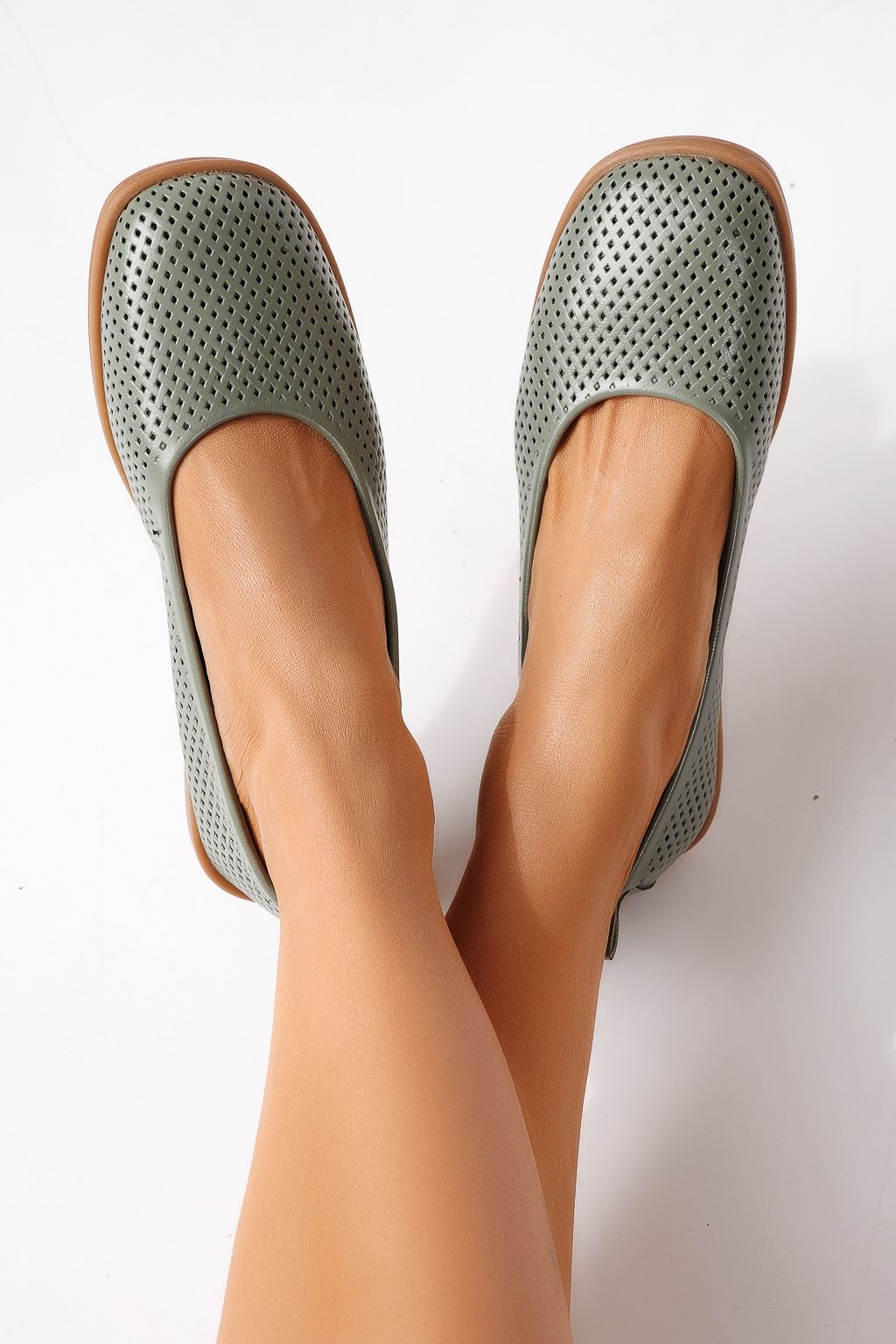 Дамски балерини зелени от еко кожа Amaya #24883