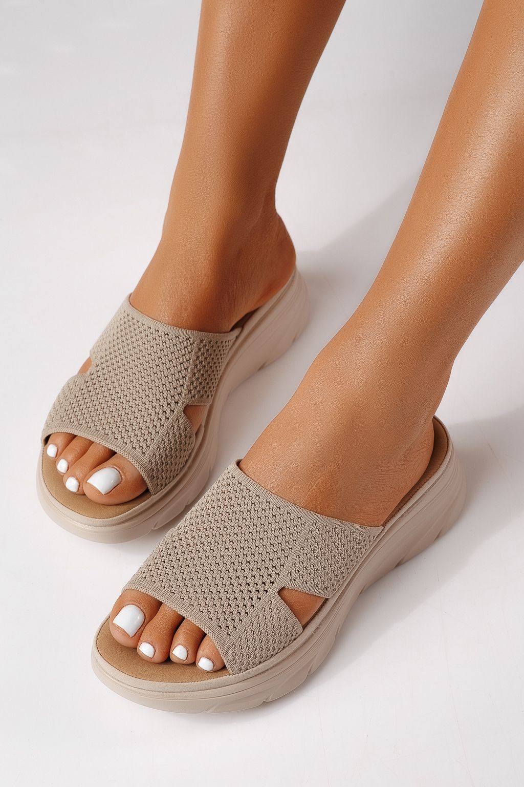 Начало Всички продукти сандали за жени Чехли/Джапанки/Сабо Дамски чехли бежови от текстилен материал Iria #25029