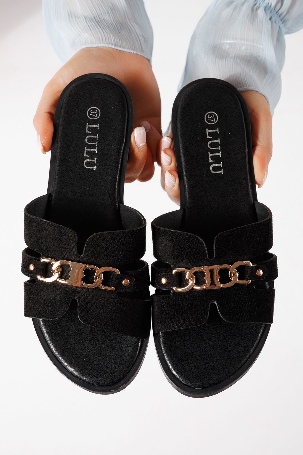 Дамски чехли черни от обърната еко кожа Pilar #25051