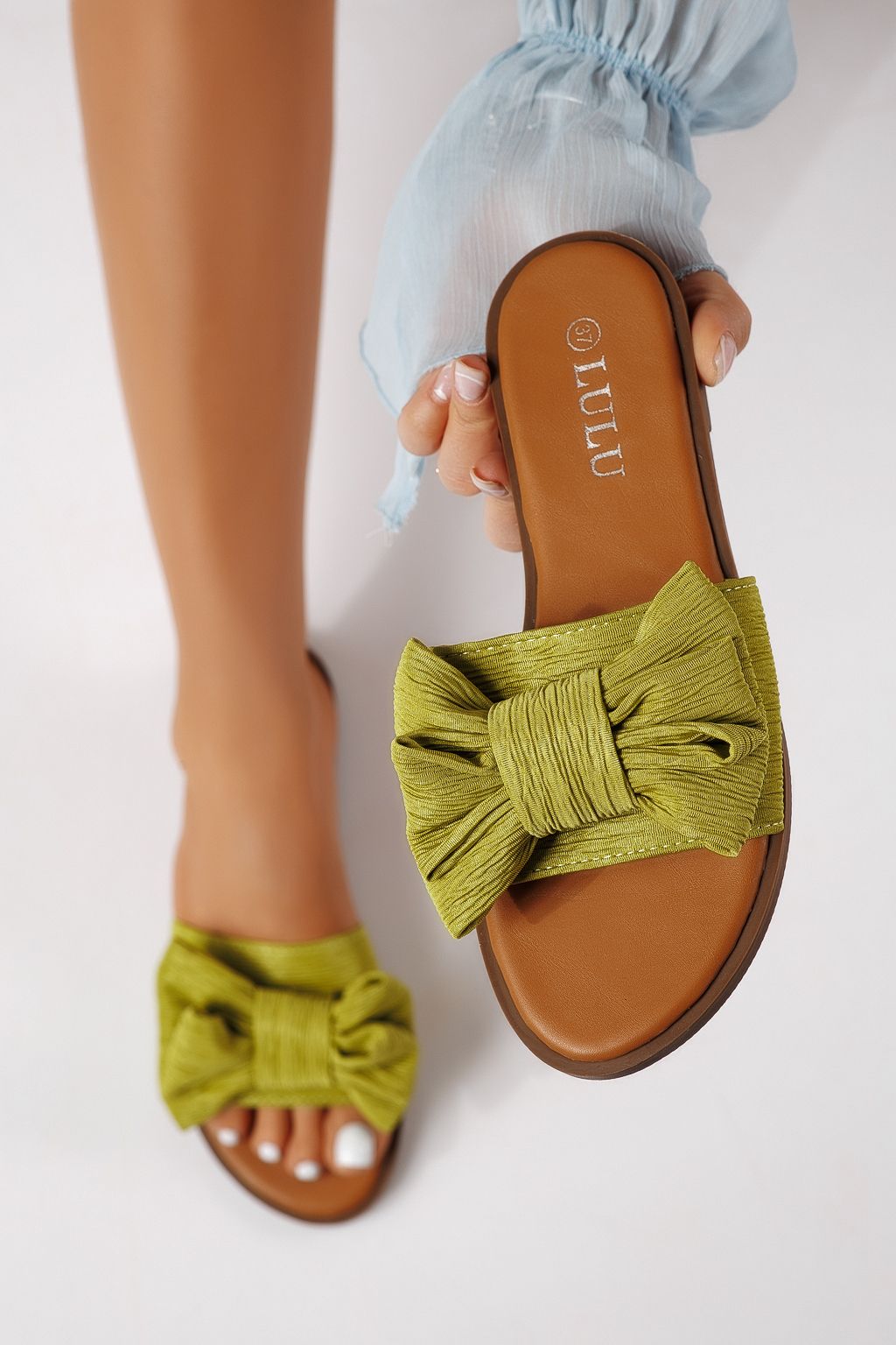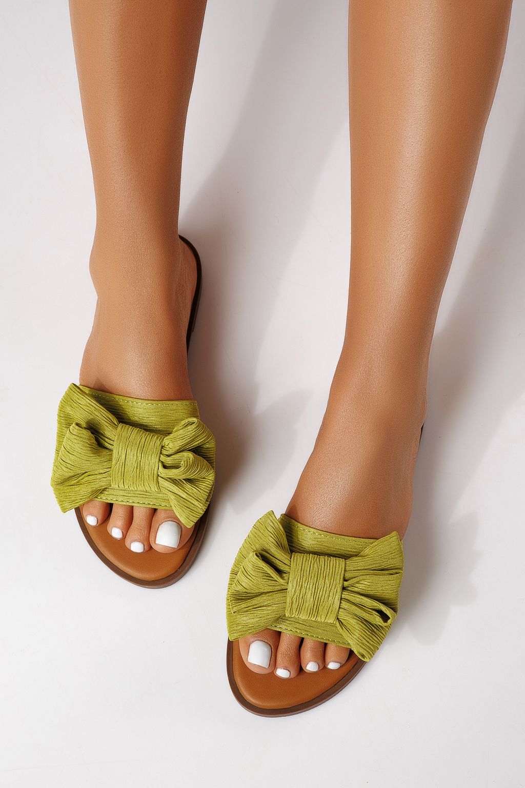 Дамски чехли зелени от текстилен материал Zaida #25062