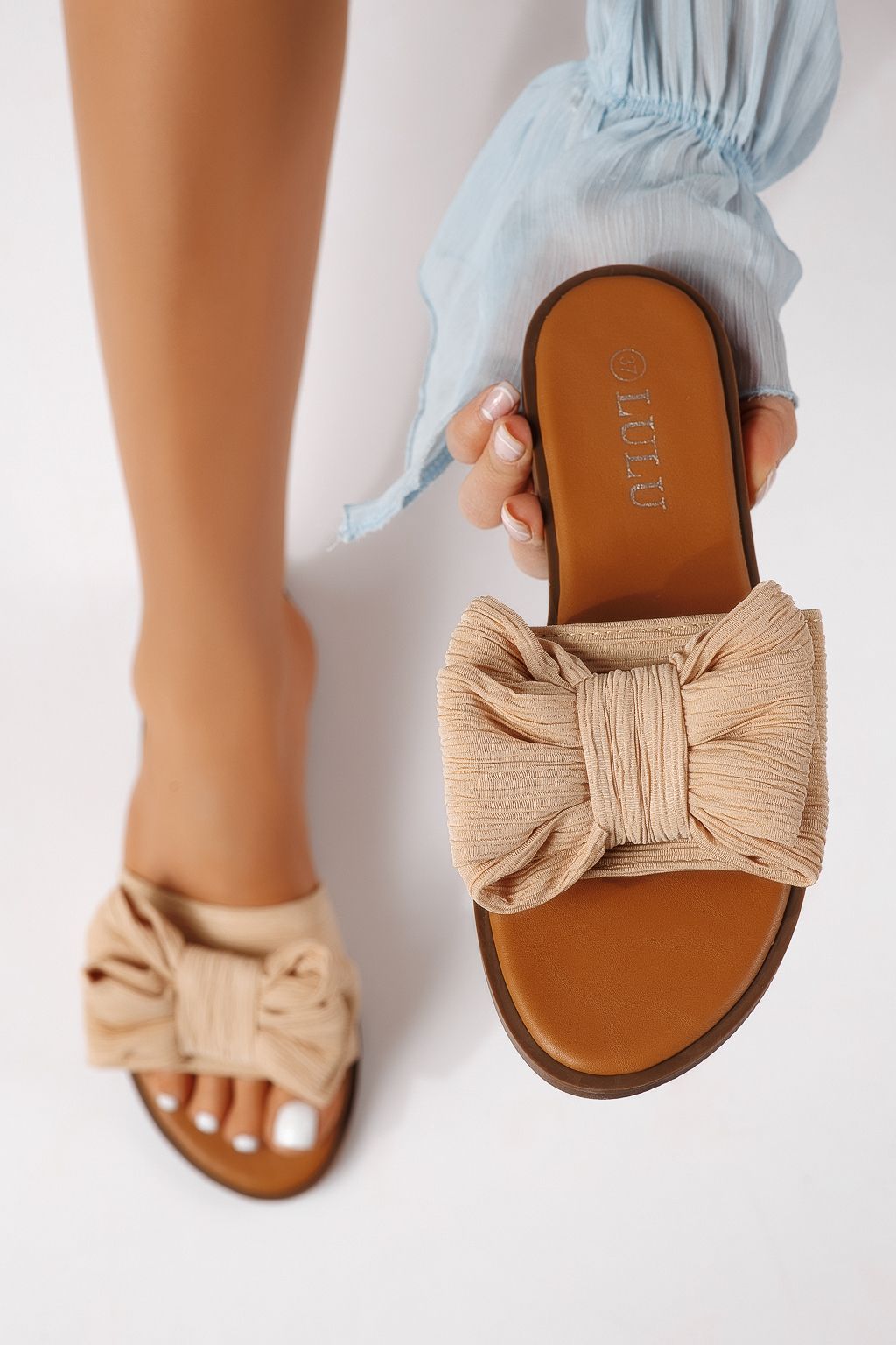 Дамски чехли бежови от текстилен материал Zaida #25065