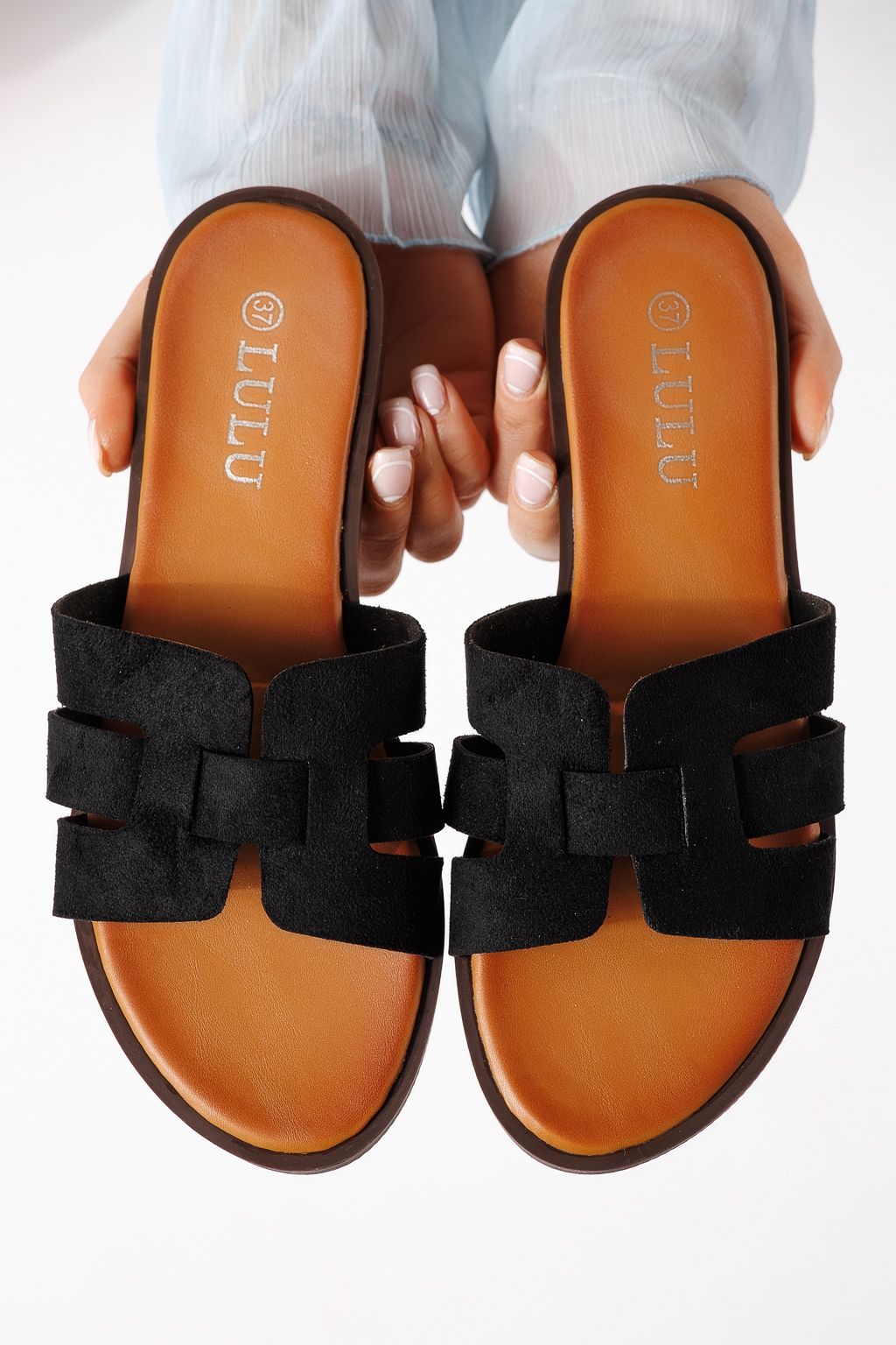 Дамски чехли черни от обърната еко кожа Odessa #25104