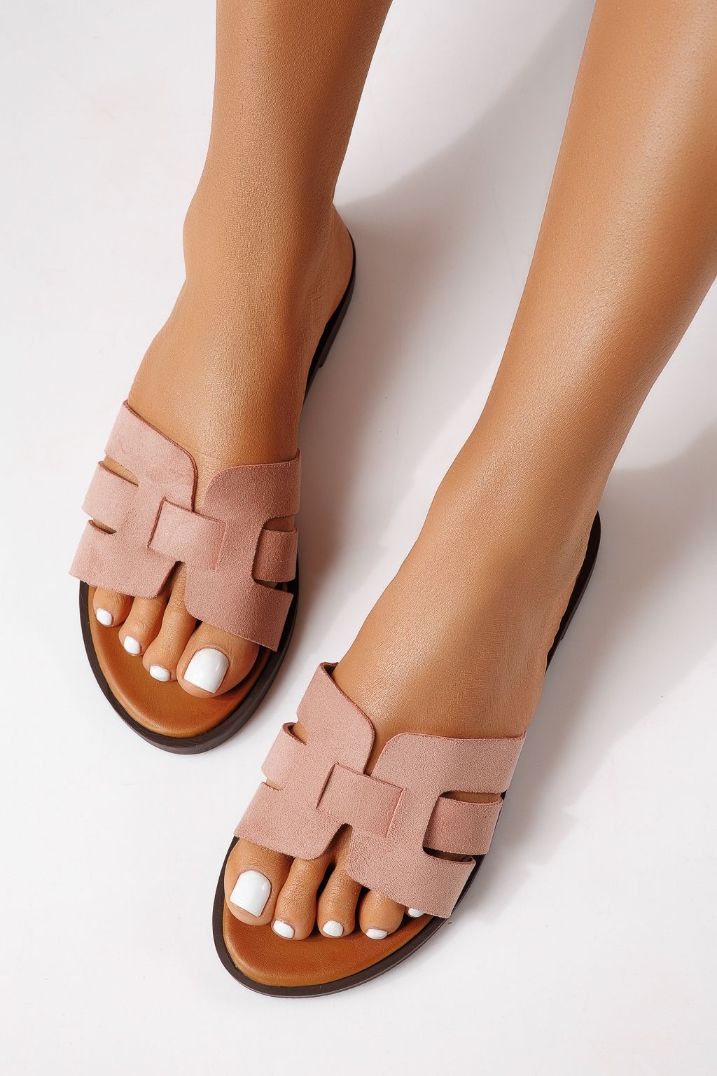 Дамски чехли розови от обърната еко кожа Odessa #25106