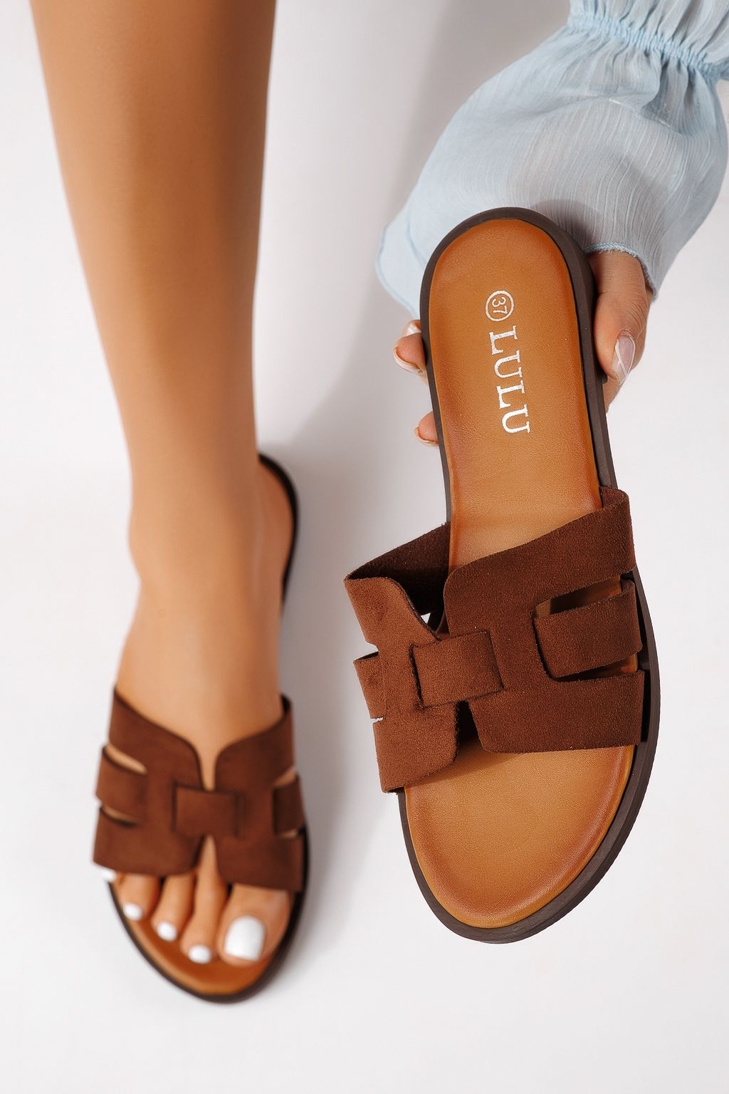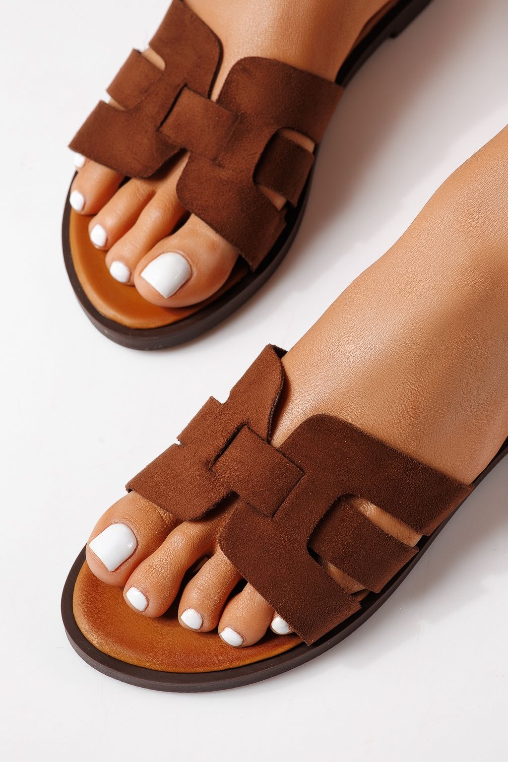 Дамски чехли кафяви от обърната еко кожа Odessa #25107