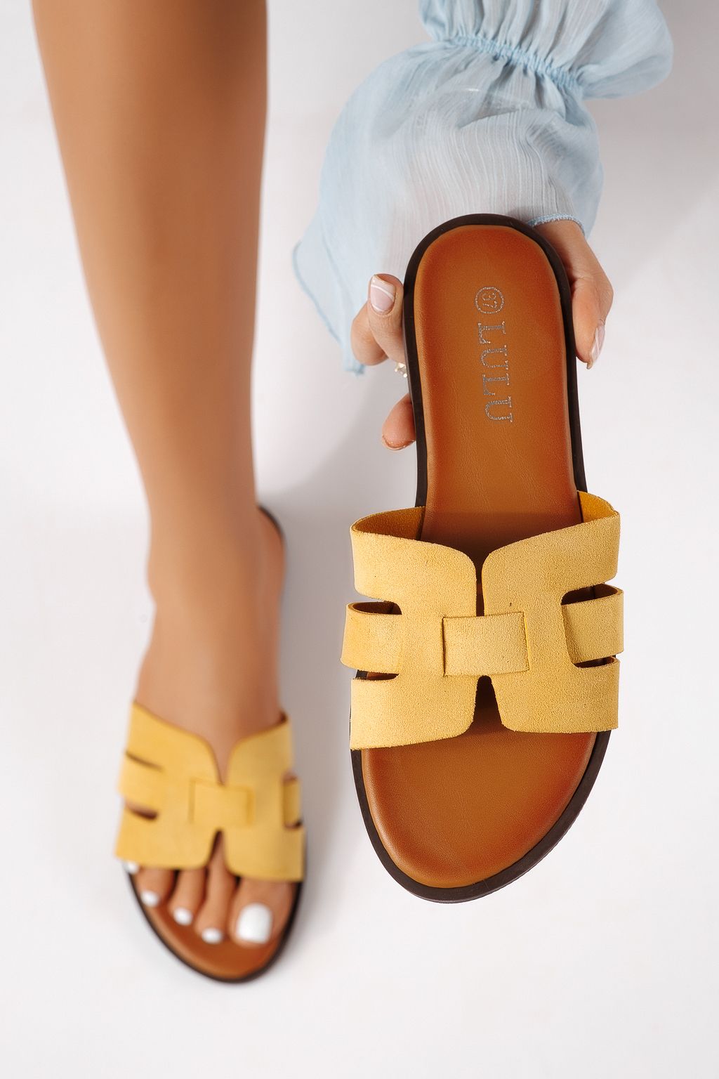 Дамски чехли жълти от обърната еко кожа Odessa #25108