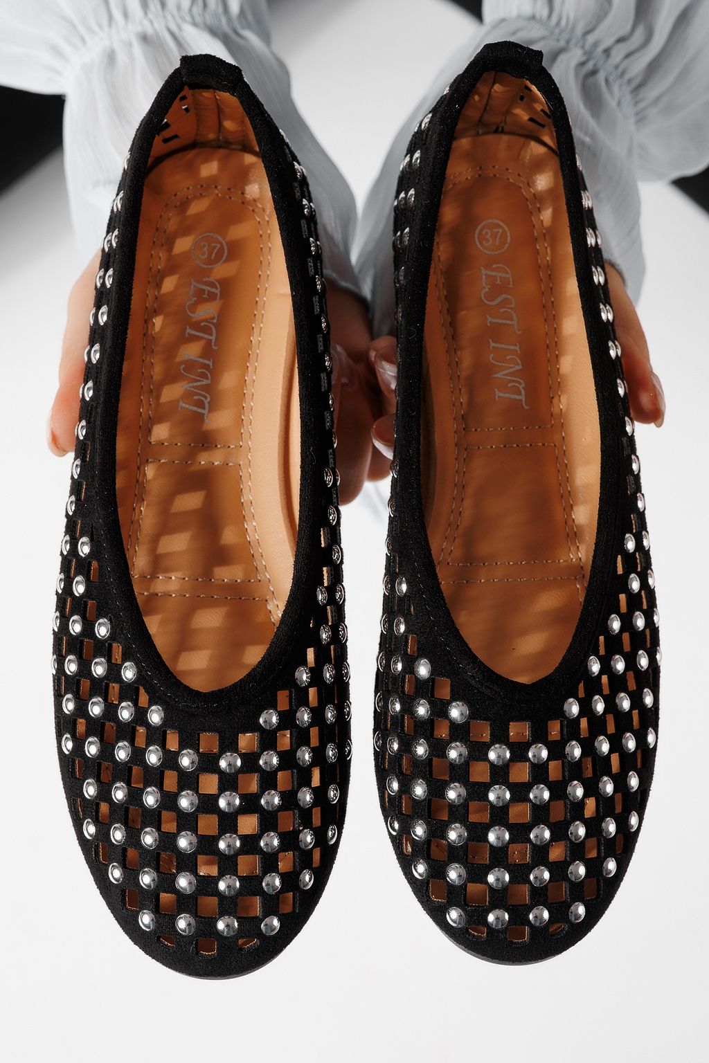 Дамски балерини черни от еко кожа Diamond #25115