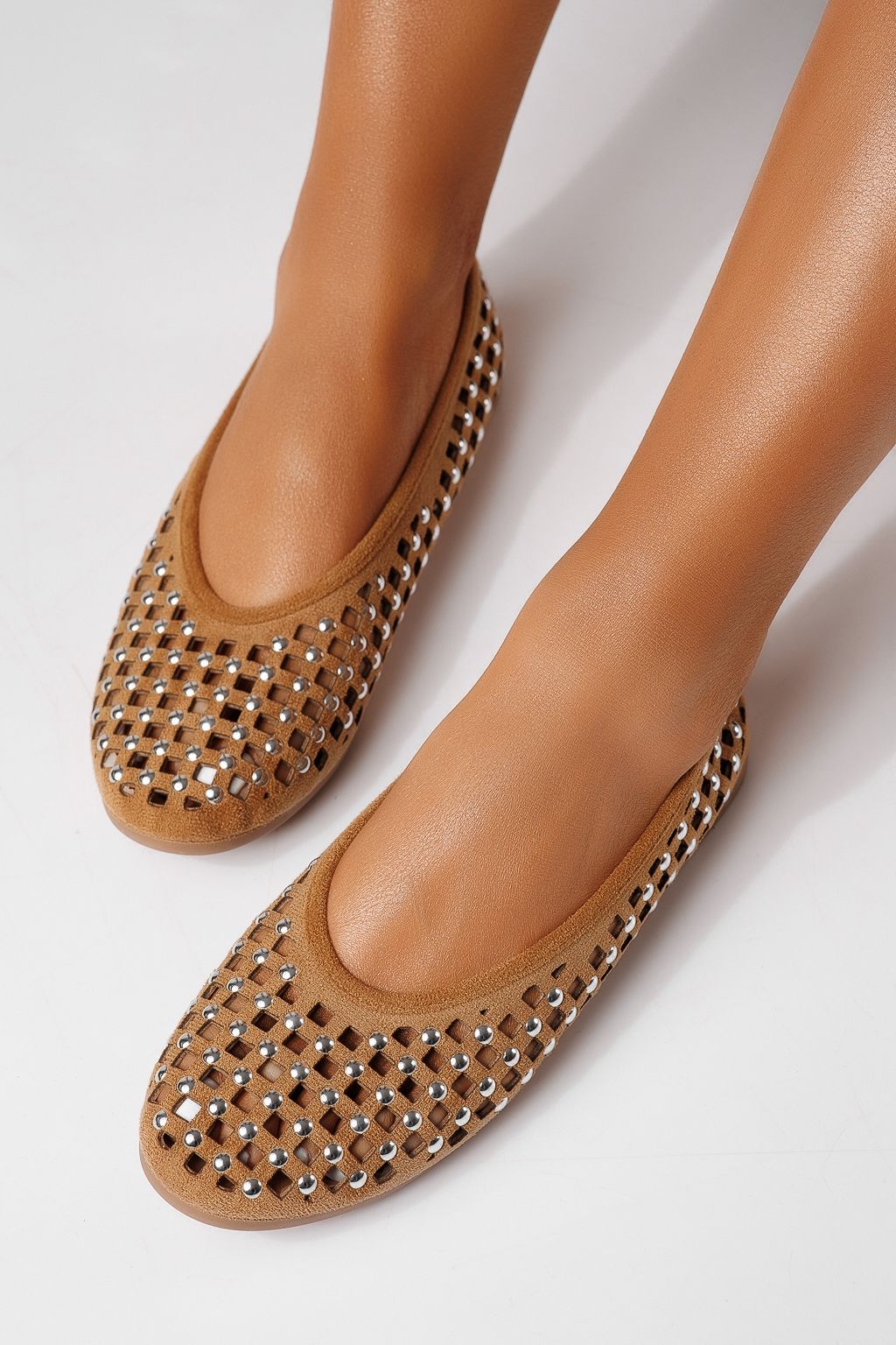Дамски балерини кафяви от еко кожа Diamond #25116