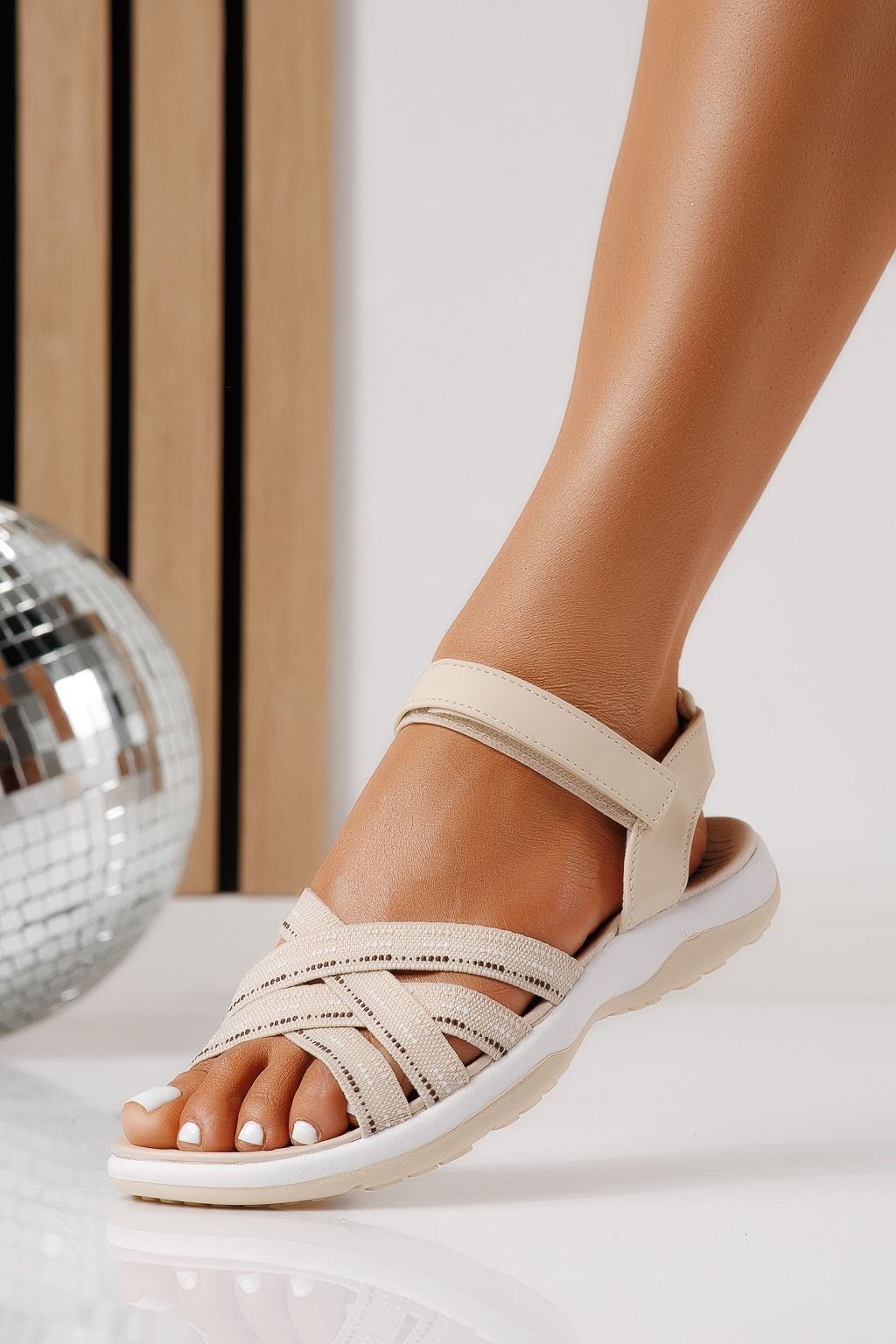 Дамски сандали с ниска подметка бежови от текстилен материал Mireya #25138
