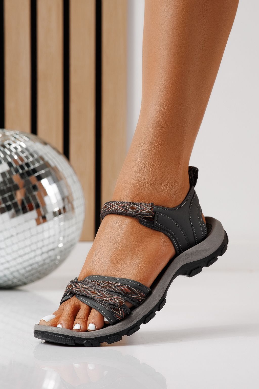 Начало Всички продукти сандали за жени Сандали с ниска подметка Дамски сандали с ниска подметка сиви от текстилен материал Kaida #25141