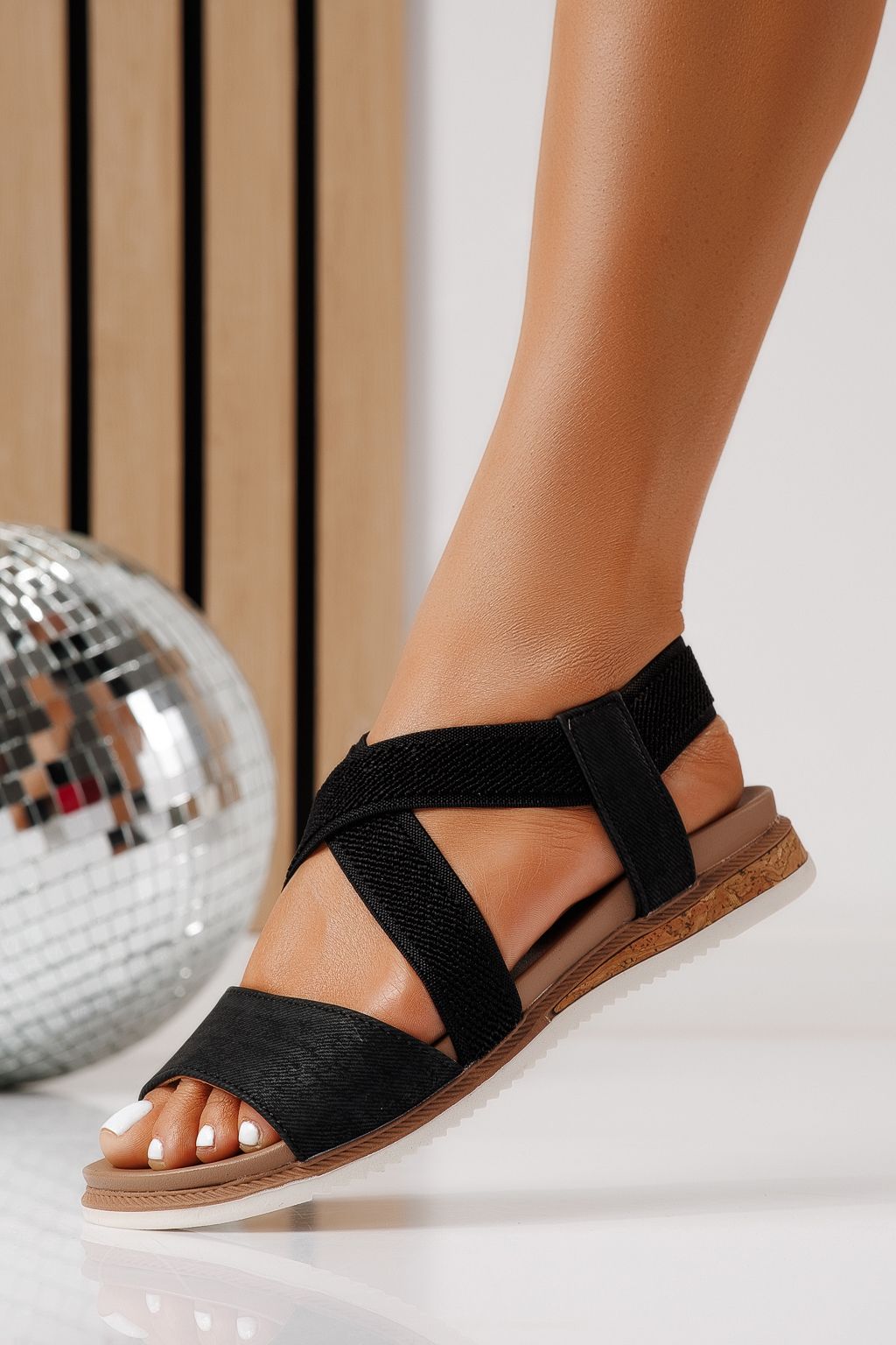 Дамски сандали с ниска подметка черни от еко кожа Yara #25152