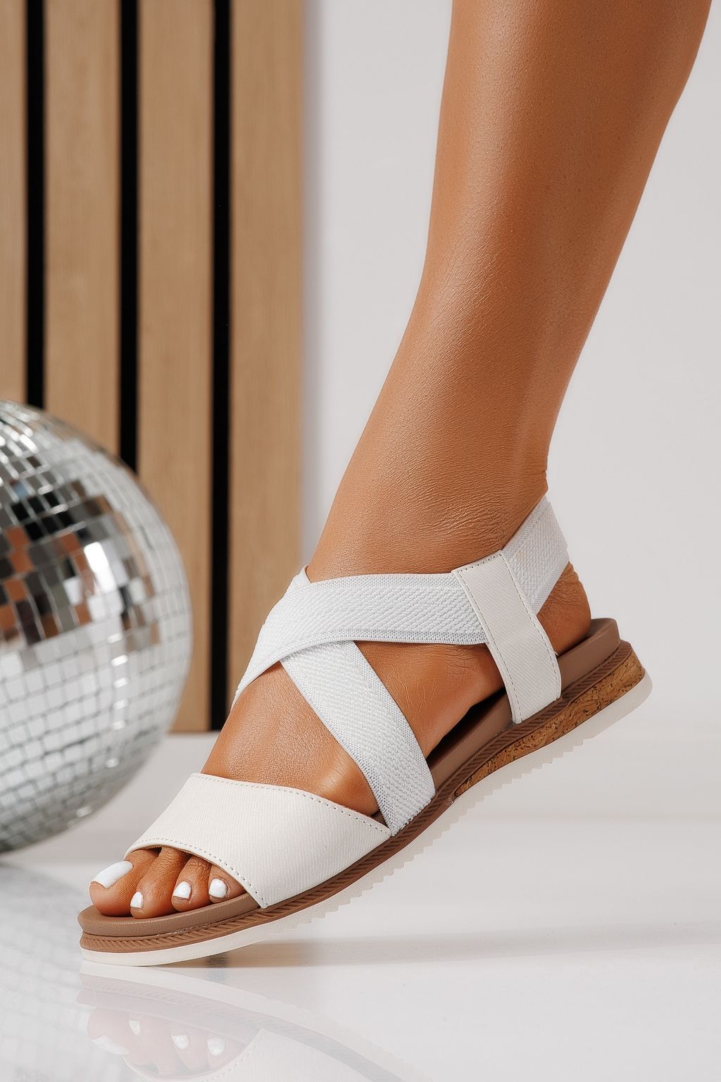 Дамски сандали с ниска подметка бели от еко кожа Yara #25155