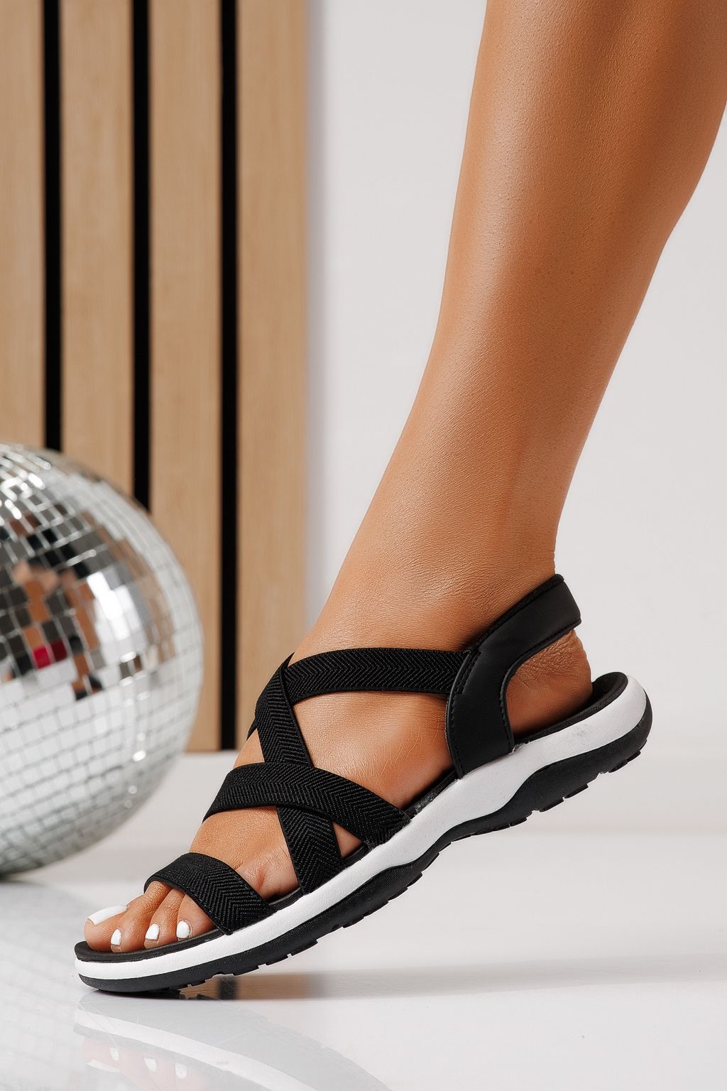 Дамски сандали с ниска подметка черни от текстилен материал Sihana #25158