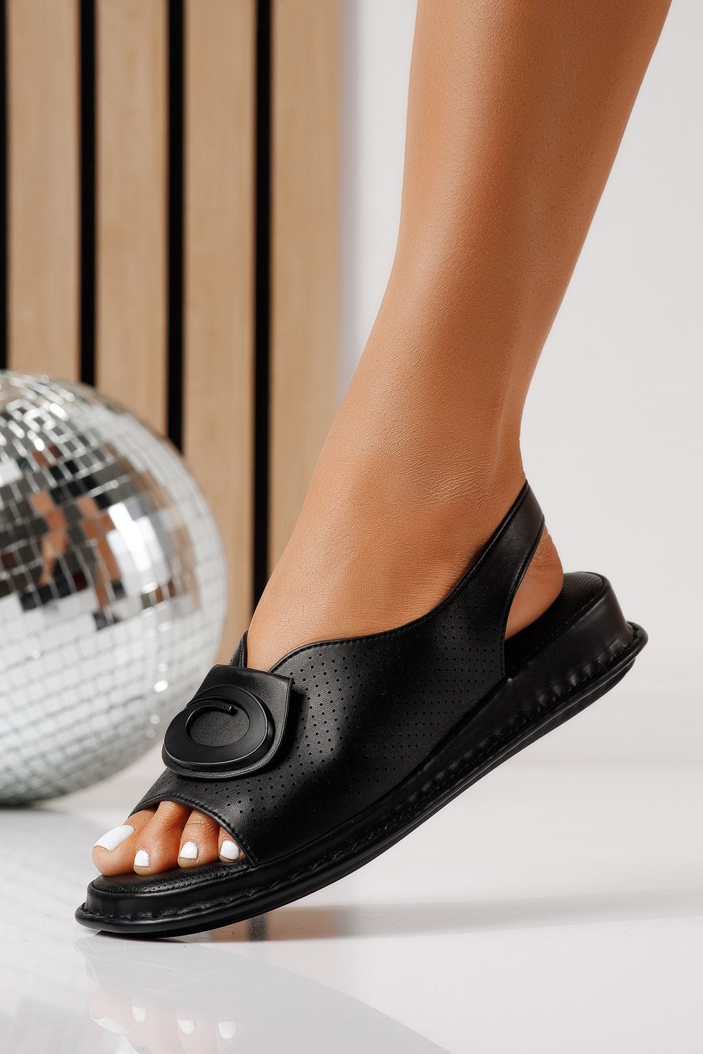 Начало Всички продукти сандали за жени Сандали с ниска подметка Дамски сандали с ниска подметка черни от еко кожа Zaria #25175